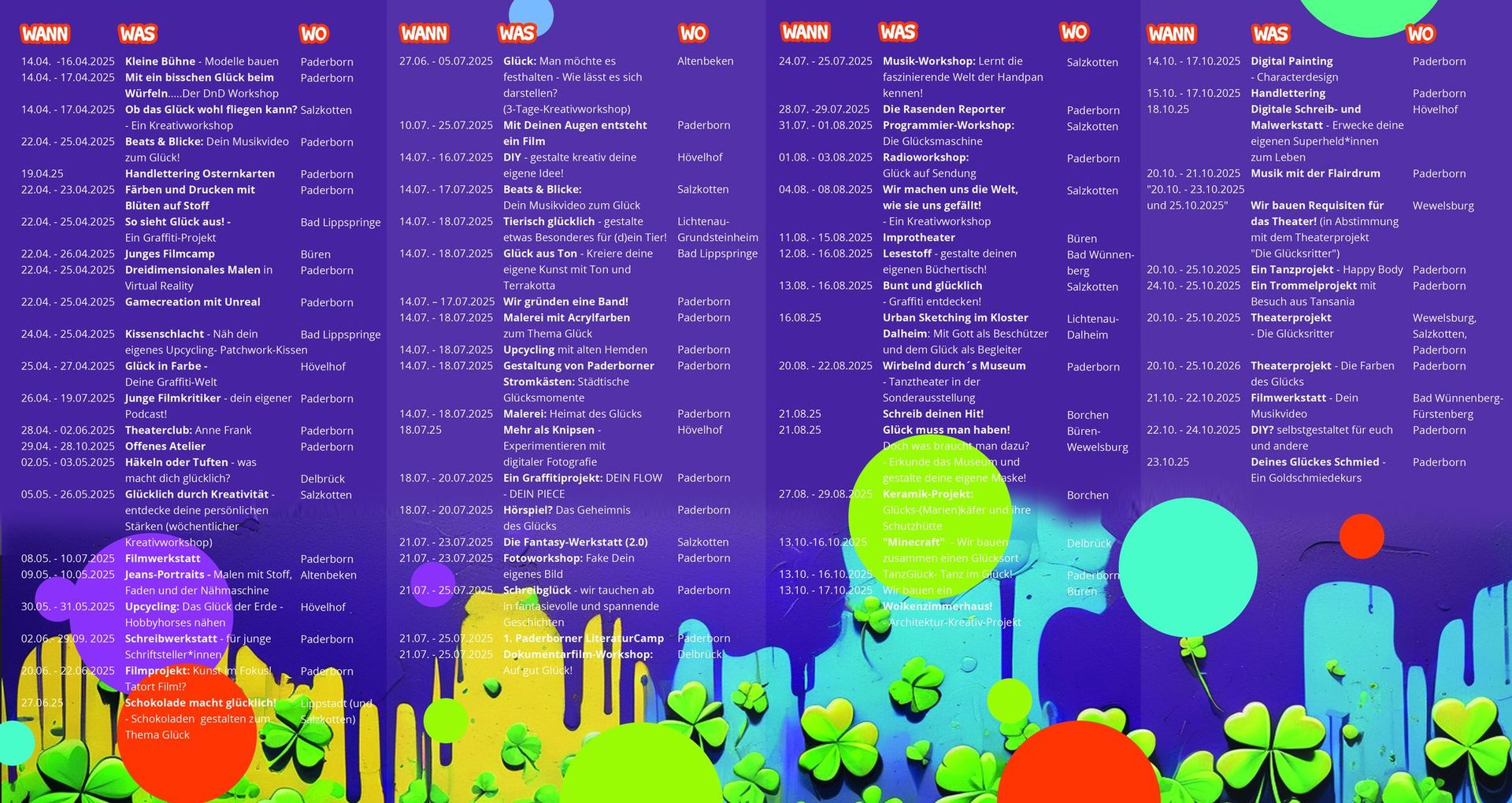 Sie befinden sich hier:StartseiteBildung UniversitätKulturelle BildungKulturrucksackKulturrucksackangebote Kulturrucksackangebote Besuch uns auf Facebook und instagramInstagram Kulturrucksack Paderborn (Öffnet in einem neuen Tab)Youtube Kulturrucksack Paderborn (Öffnet in einem neuen Tab)© Stadt PaderbornKulturrucksack Programm 2025Kunst ProjekteMedien ProjekteLiteratur ProjekteTanz ProjekteTheater ProjekteMusik ProjekteMuseum Sonstige Projekte