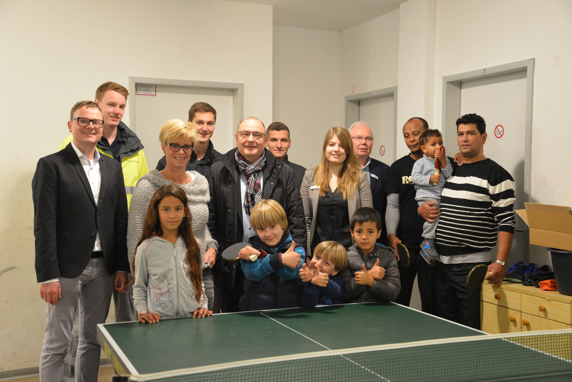 Donnerstag, 27. Oktober 2016 | Stadt Paderborn - Über eine Tischtennisplatte mit dem passendem Equipment und eine Küche in dem Ehrenamtsraum können sich nun die 90 Geflüchteten freuen, die in der Otto-Stadler-Straße untergebracht sind.