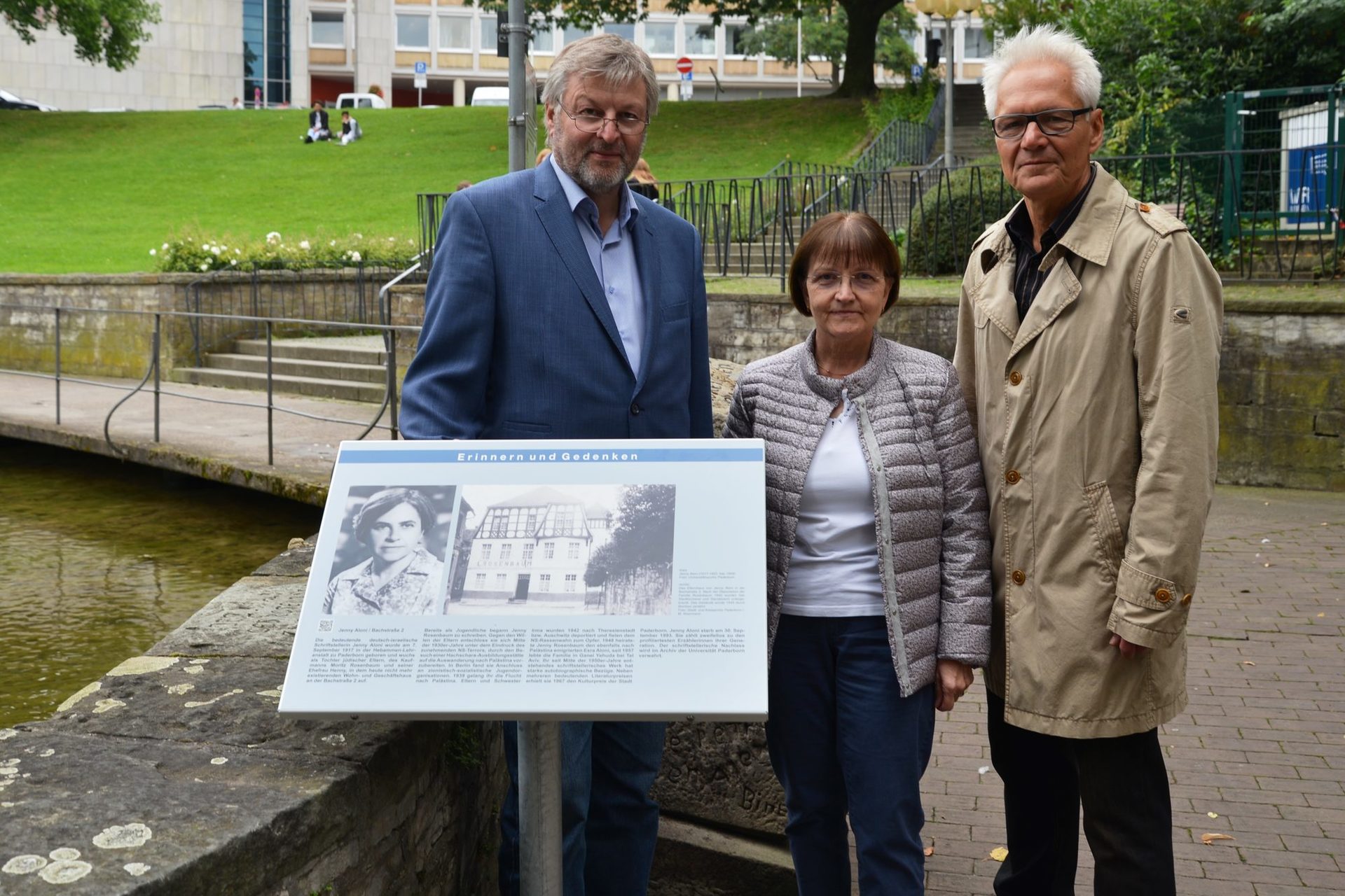 Freitag, 08. September 2017 | Stadt Paderborn - Auf Initiative der Gesellschaft für Christlich-Jüdische Zusammenarbeit wurde am Donnerstag im Paderquellgebiet eine Gedenktafel aufgestellt, die an Paderborns bedeutendste Schriftstellerin Jenny Aloni erinnert.