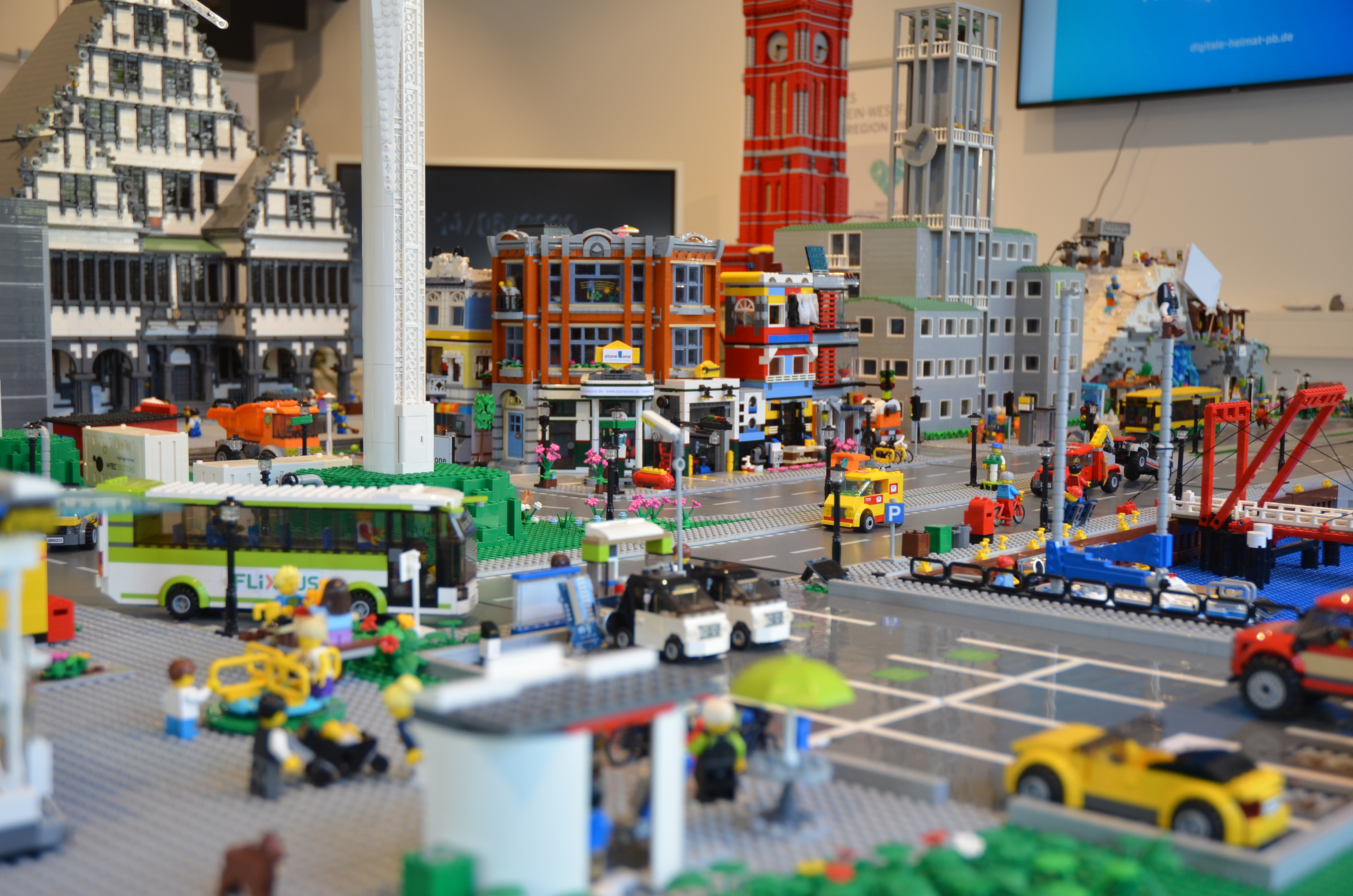 Gestartet wurde das Konzept bereits mit der Ausstellung des LEGO-Modells der FIWARE Foundation, ein internationales, nicht kommerzielles Unternehmen für offene Standards und Open Source Lösungen im Bereich der Smart Cities. Das Modell zeigt verschiedene Bereiche einer Smart City, wie beispielsweise Smart Mobility (Mobilität), Smart Industry (Industrie), Smart Energy (Energie), Smart Agriculture (Landwirtschaft) und Smart Government (Verwaltung). Auch die Paderborner Digitalisierungsprojekte können an dem Modell erklärt werden. In das LEGO-Modell konnte das Paderborner Rathaus von Hundbrax integriert werden. Besucher*innen können das LEGO-Modell montags bis donnerstags von 10 – 15 Uhr anschauen und Fragen zu den Projekten stellen.