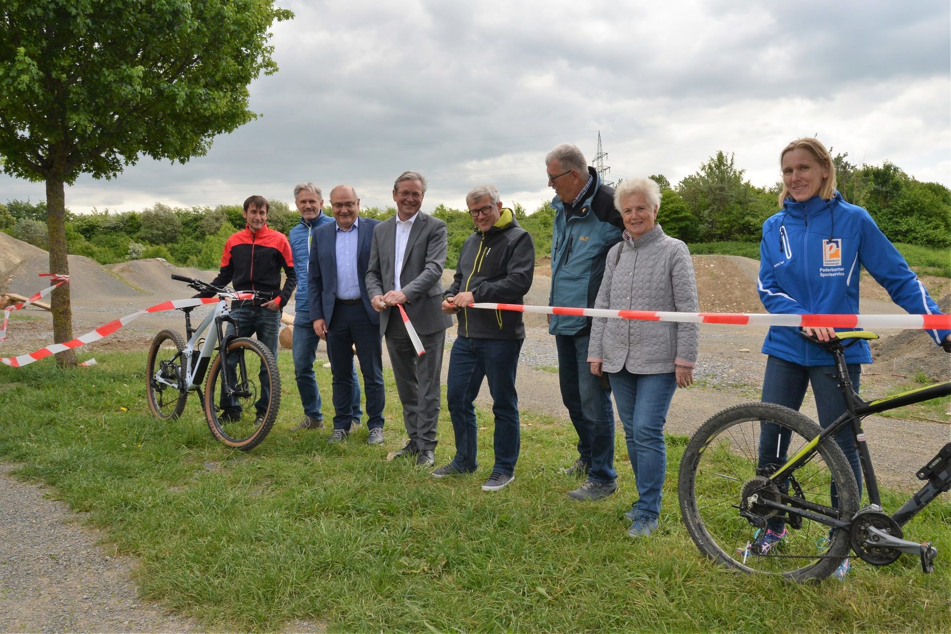 Dreier begrüßte die anwesenden Gäste in lockerer Runde und lobte das Engagement der Beteiligten: „Paderborn ist eine Sportstadt und ich freue mich sehr, dass das sportliche Angebot hier stetig wächst“. Auch Sportdezernent Walter freut sich über die neue Anlage: „Mit dem Bikepark ist ein weiteres Herzstück unserer Sportstättenentwicklungsplanung fertiggestellt worden. Es wurde eine Bewegungsfläche für den Vereinssport und Freizeitsport gleichermaßen geschaffen, die, so hoffe ich, Vorbild sein kann, für weitere Projekte dieser Art in der Region“, so Walter. Symbolisch wurde von Bürgermeister Michael Dreier das Absperrband um die Anlage durchgeschnitten: Der Bikepark ist nun offiziell zur Nutzung freigegeben. „Ein Eröffnungsworkshop für alle Interessierten ist in Zusammenarbeit mit dem Verein in Planung und wird im Laufe des Sommers stattfinden“, so Dreier.