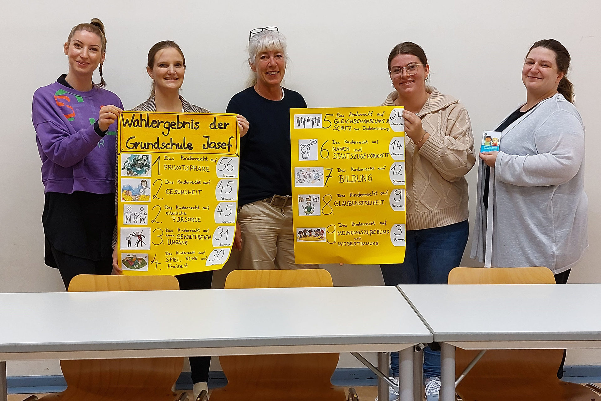 Dienstag, 25. Oktober 2022 | Stadt Paderborn - Vor den Sommerferien hat das Kinderbüro der Stadt Paderborn eine große Kinderrechtewahl mit den Schüler*innen der Grundschule Josef in Kooperation mit der Schulsozialarbeiterin Jasmin Raphaela Herbst durchgeführt. Nun wurden die Ergebnisse der Wahl in der Klassensprecherrunde (Schülerparlament) der Schule vorgestellt.