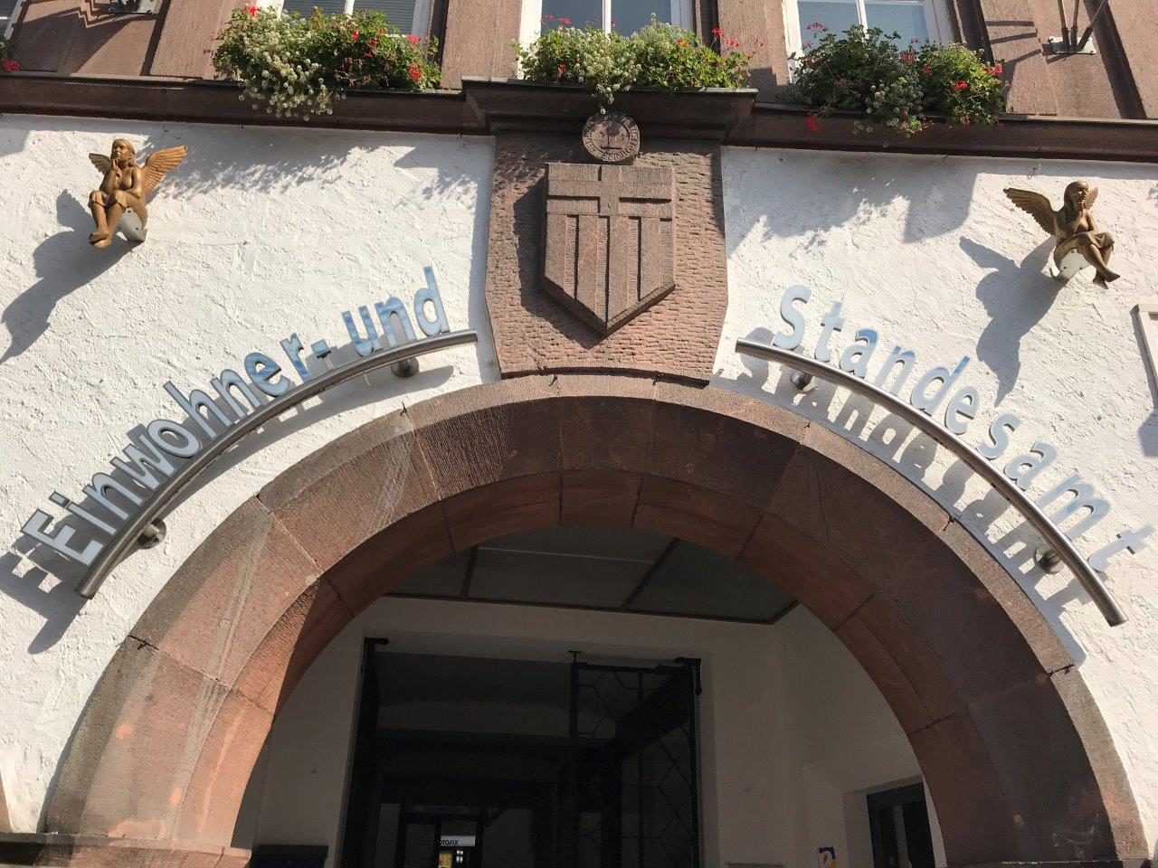 Das Einwohneramt ist für die Zeit der Baumaßnahme im Erdgeschoss und das Standesamt im zweiten Obergeschoss des Gebäudes Bahnhofstraße 50 untergebracht.