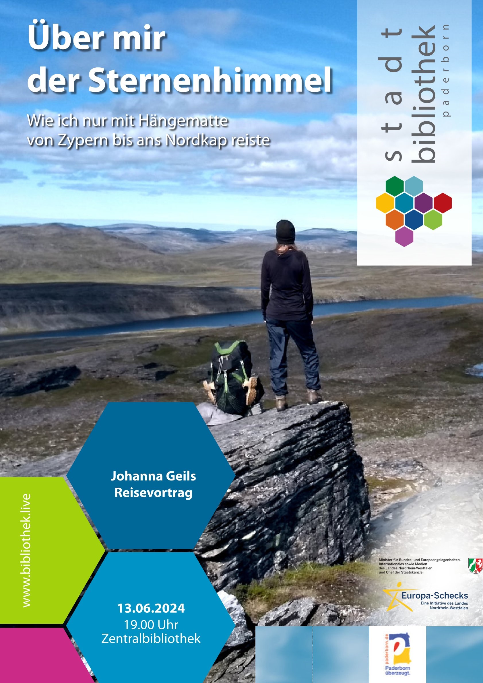 Diese berichtet ab 19.30 Uhr von ihren Reisen in Europa, in Anlehnung an ihr Buch „Über mir der Sternenhimmel - Wie ich nur mit Hängematte von Zypern bis ans Nordkap reiste“. Ohne Zelt, dafür mit einer ordentlichen Portion Durchhaltevermögen und einem leichten Hang zur Selbstüberschätzung, ist sie unterwegs auf spektakulären Wanderwegen einmal quer durch Europa und berichtet an diesem Abend davon.