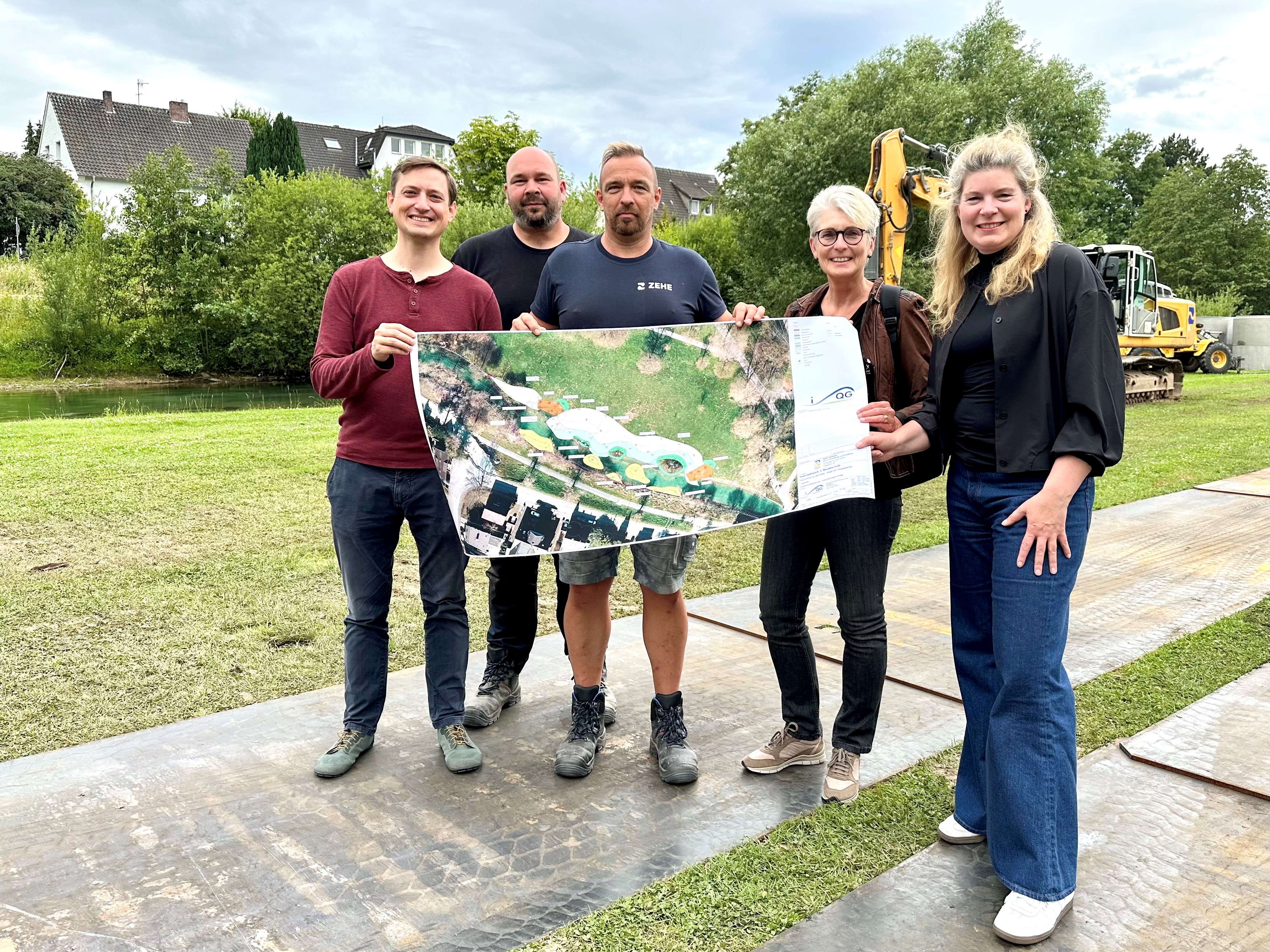 Donnerstag, 20. Juni 2024 | Stadt Paderborn - 2014 wurde mit dem Konzept Flusslandschaft Pader die Umgestaltung der Paderwiesen zum Paderauenpark ins Auge gefasst. Nach Abschluss der Umsetzung des ersten Abschnittes in 2022 mit der Öffnung der Paderkampfbahn hin zu den Paderwiesen einschließlich der aufwändigen Sanierung der Beachvolleyballplätze sowie dem Neubau einer hochwertigen WC-Anlage geht es ab dieser Woche mit dem Abschnitt vom Fürstenweg bis zum Heierswall weiter.