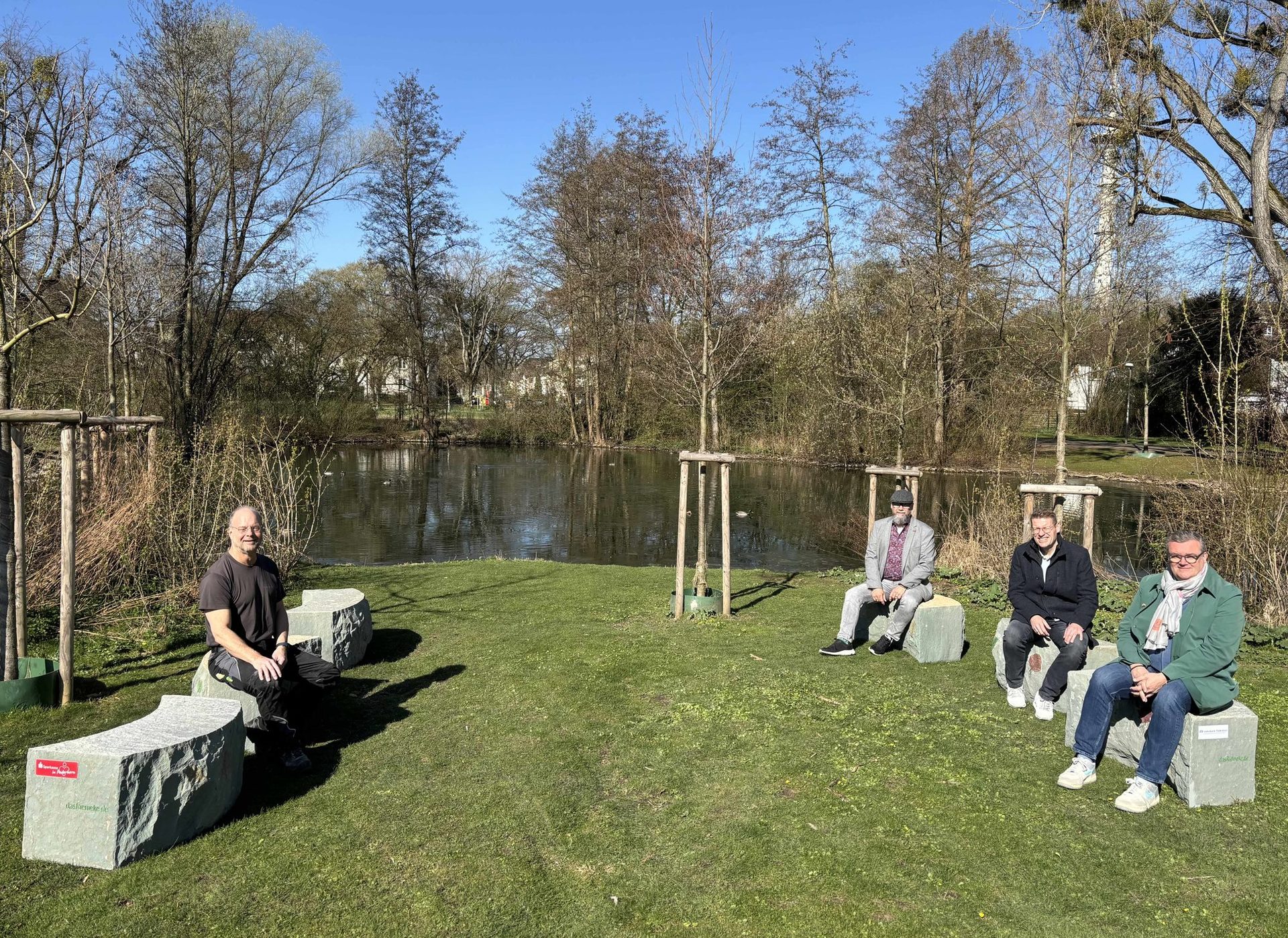 Freitag, 28. März 2025 | Stadt Paderborn - Neue Bänke runden ab sofort den neugestalteten Bereich rund um die Boulebahn im Riemekepark ab. Gefertigt und aufgestellt wurden die Bänke aus Naturstein von dem Paderborner Bildhauer Michael Diwo. Um die Finanzierung hat sich die Interessengemeinschaft das-Riemeke.de e.V. gekümmert, die Spenden von der Volksbank Paderborn und der Sparkasse Paderborn für die Bänke gesammelt hat.
