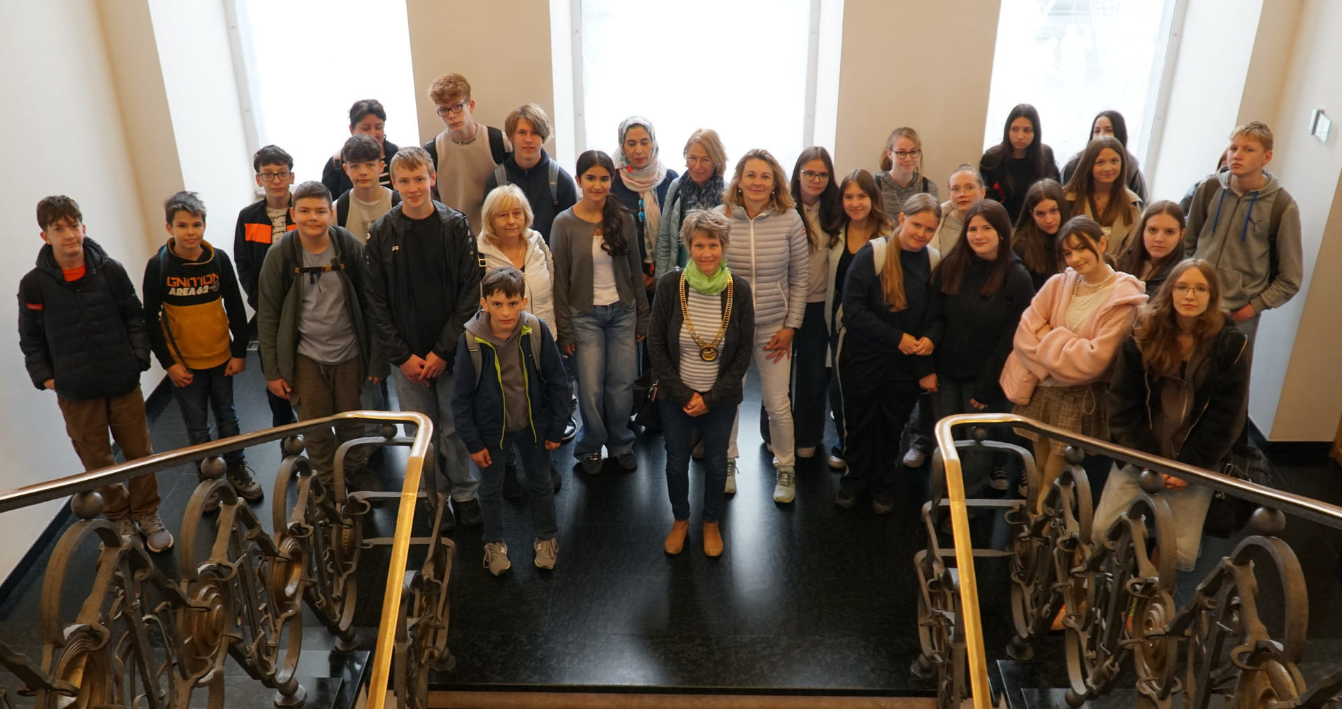 Sabine Kramm empfängt Schülergruppe aus Debrecen im Rathaus