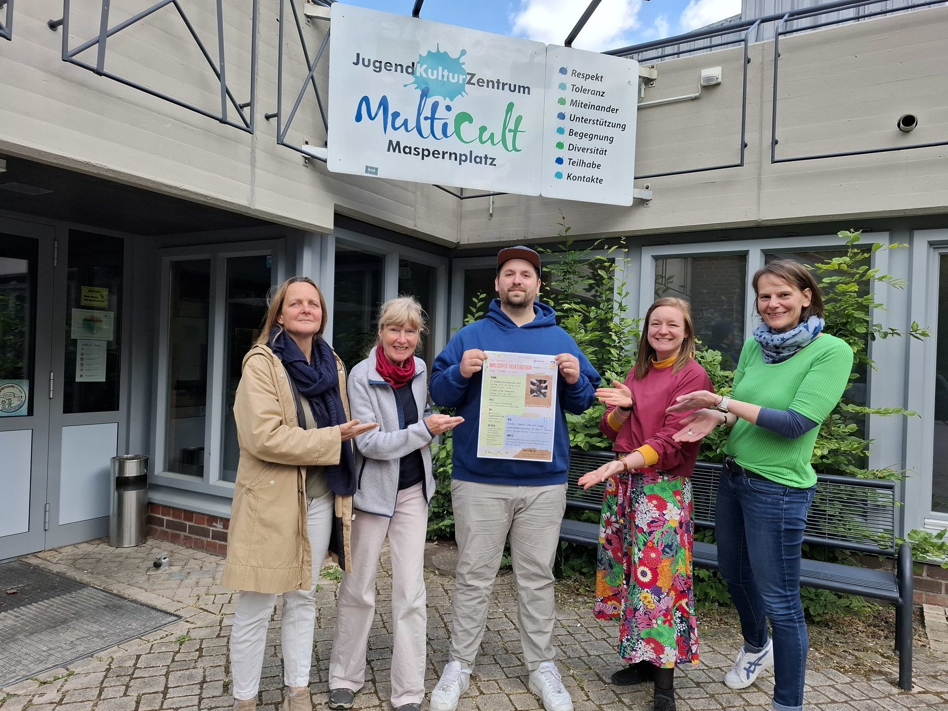 Angeleitet wird das inklusive Theaterprojekt von Schauspielerin und Theaterpädagogin Ann-Britta Dohle und Schauspieler Marius Meschede. Musikalisch begleitet wird das Stück von Musiker René Madrid. Die Proben finden von Dienstag, 19. August, bis Freitag, 22. August, täglich von 9.30 Uhr bis 14 Uhr im Jugendkulturzentrum MultiCult, Haxthausenhof 18, statt. Den Abschluss bildet die öffentliche Theaterpremiere am Samstag, 23. August, um 15 Uhr, die mit anschließendem Kaffee und Kuchen ihren Ausklang finden wird.