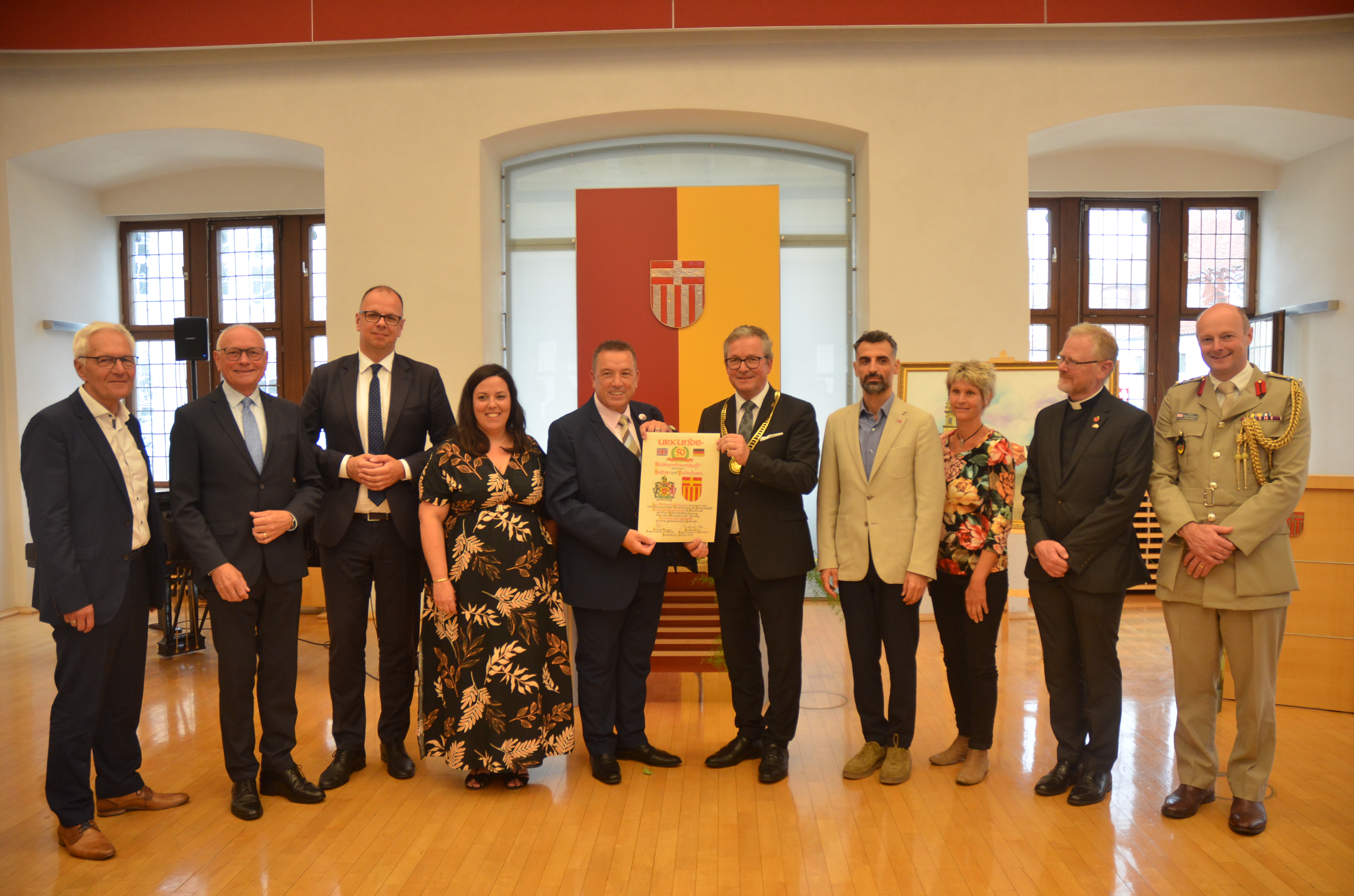 Donnerstag, 31. Juli 2025 | Stadt Paderborn - Am Freitagabend wurde im festlich geschmückten Paderborner Rathaus ein halbes Jahrhundert Städtepartnerschaft gefeiert: Seit 50 Jahren verbindet Paderborn und die englische Stadt Bolton eine enge Freundschaft.