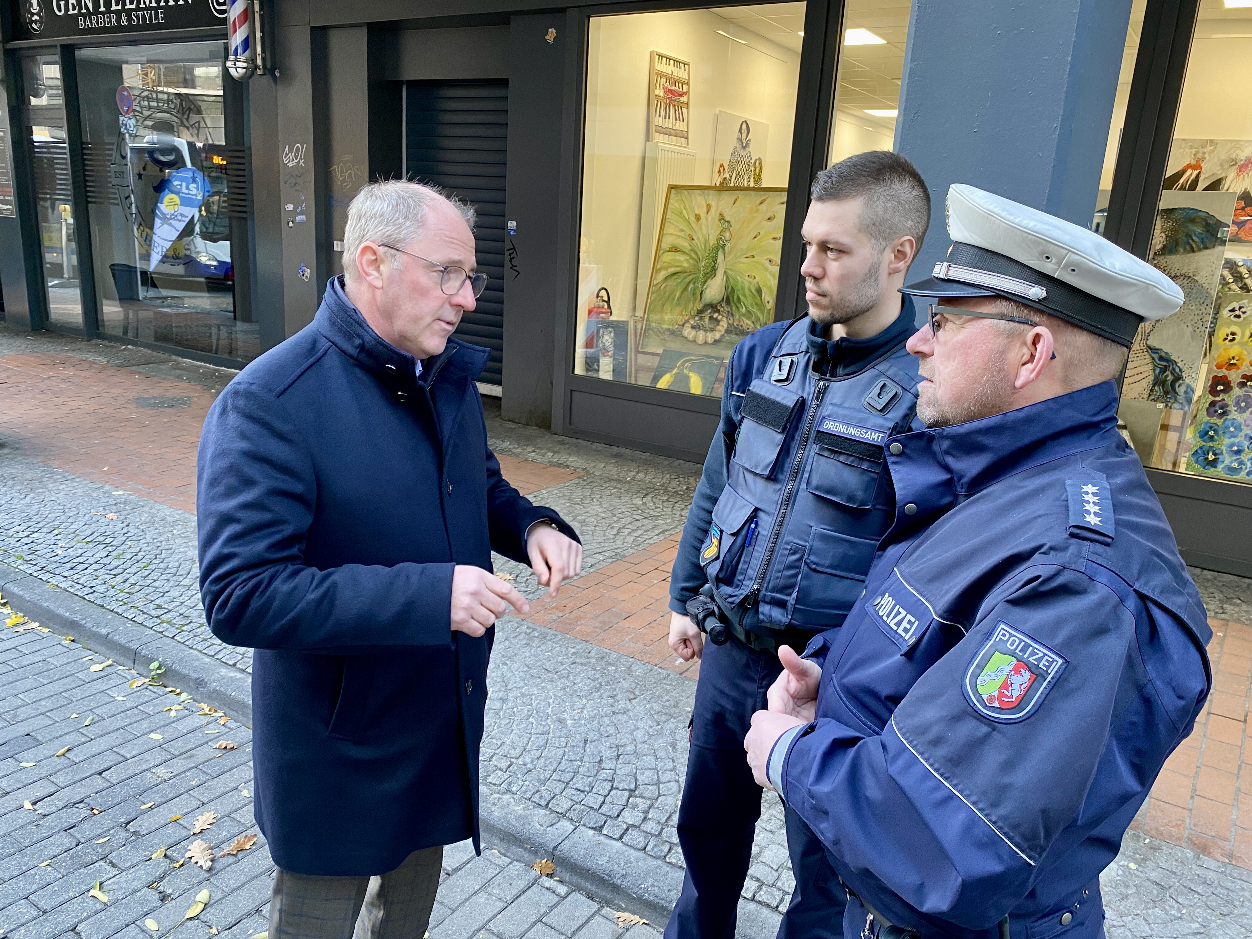 Bürgermeister Stefan-Oliver Strate informiert sich bei Rundgang über Sicherheit in der Innenstadt