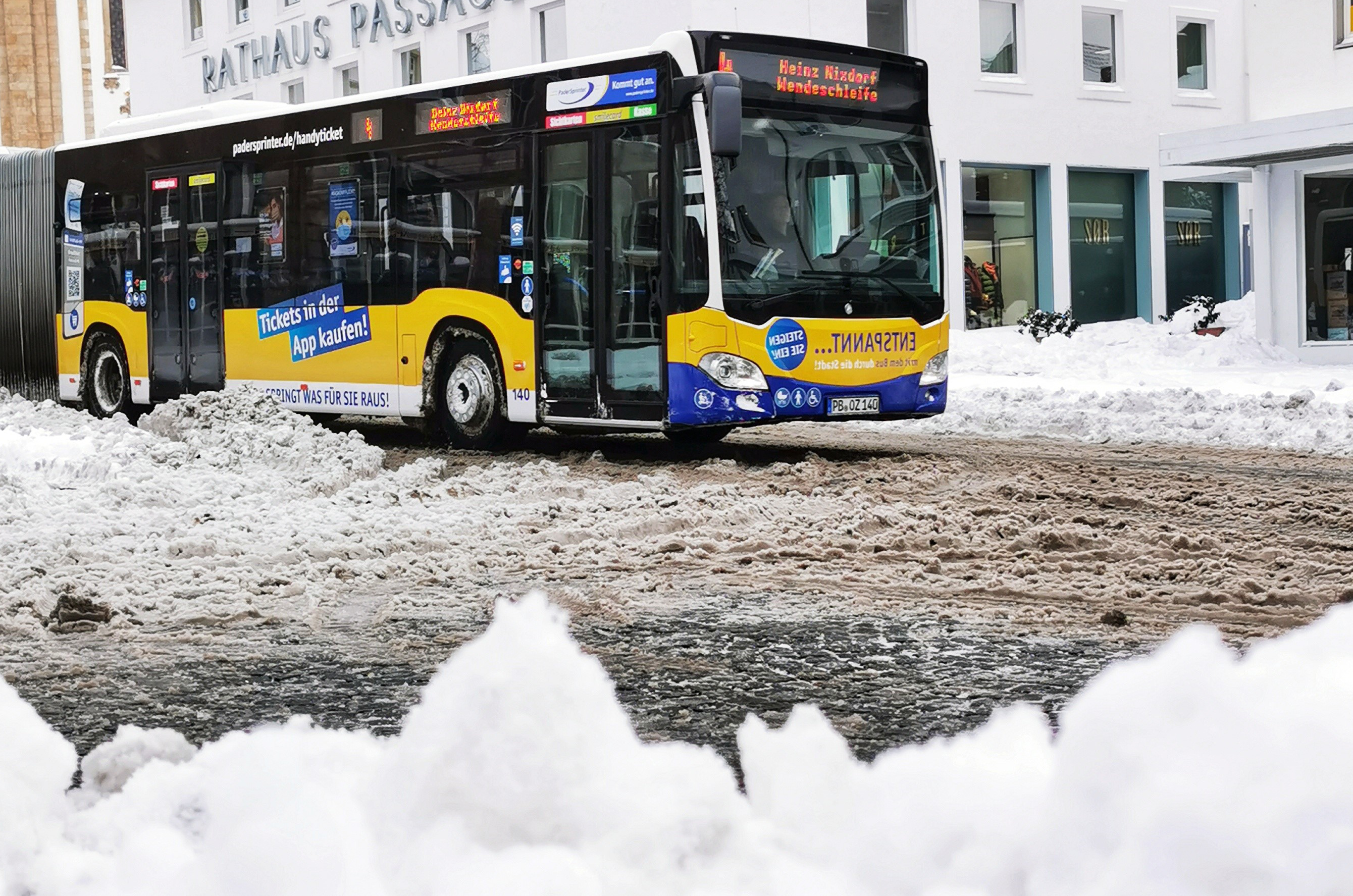 Plötzliches Einsetzen von Schnee und Glätte erfordern auch beim PaderSprinter immer ein schnelles und umsichtiges Handeln, um Fahrpersonal, Fahrgäste und alle Verkehrsteilnehmenden nicht zu gefährden. So gut es geht, bereitet sich das Nahverkehrsunternehmen auf wetterbedingte Herausforderungen wie Schnee, Eis, aber auch Regen, Sturm oder ähnliches vor. Je nach Vorhersehbarkeit und Ausprägung werden auch sehr kurzfristige und für den Linienbetrieb einschneidende Maßnahmen notwendig. Dabei steht die Balance zwischen Vorsicht, Vernunft und adäquaten Maßnahmen im Vordergrund.