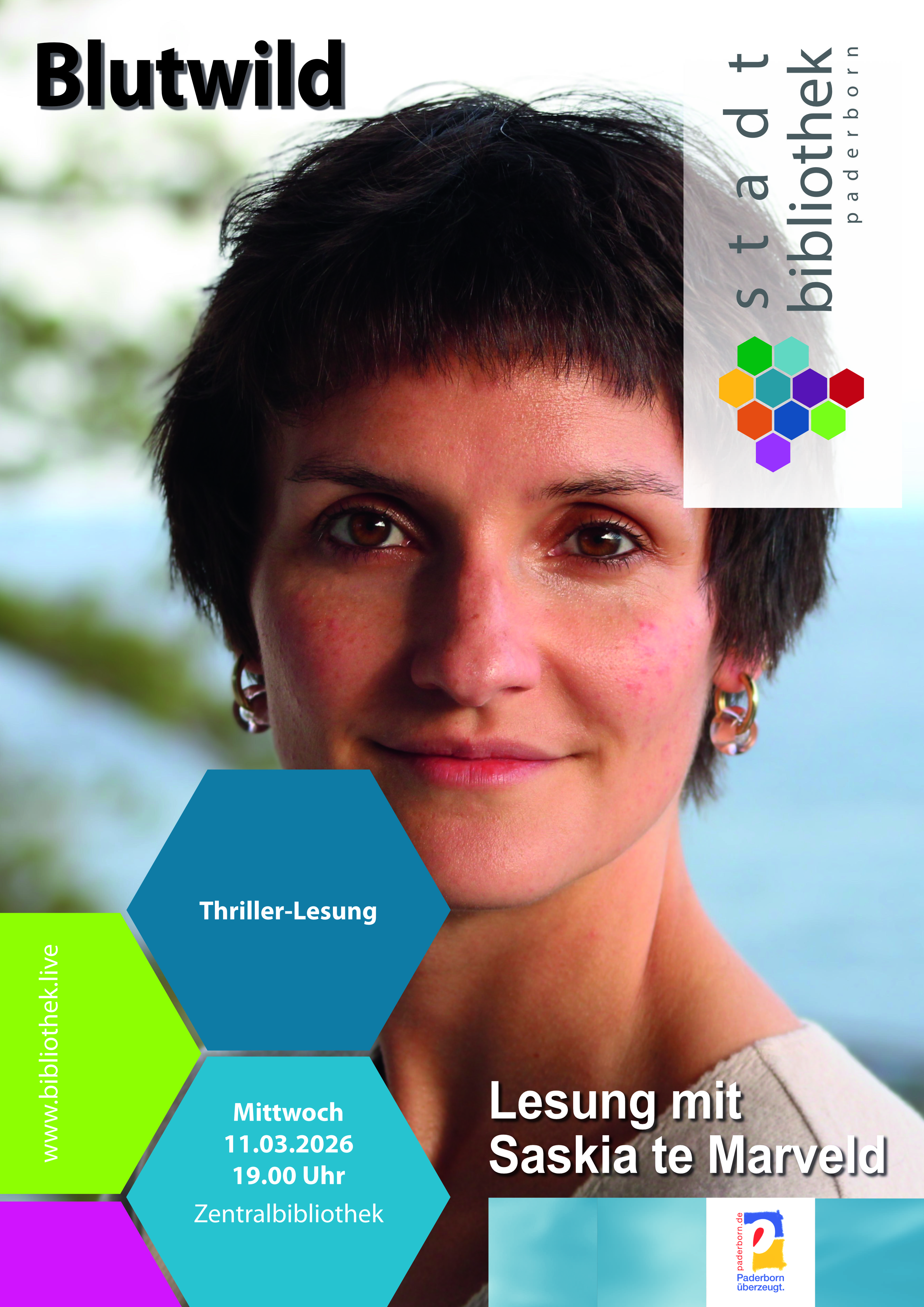 Dienstag, 24. Februar 2026 | Stadt Paderborn - Die Zentralbibliothek lädt am Mittwoch, 11. März, zu einer Lesung mit der in Paderborn lebenden Autorin Saskia te Marveld ein, die ihren Debütroman „Blutwild“ vorstellen wird.