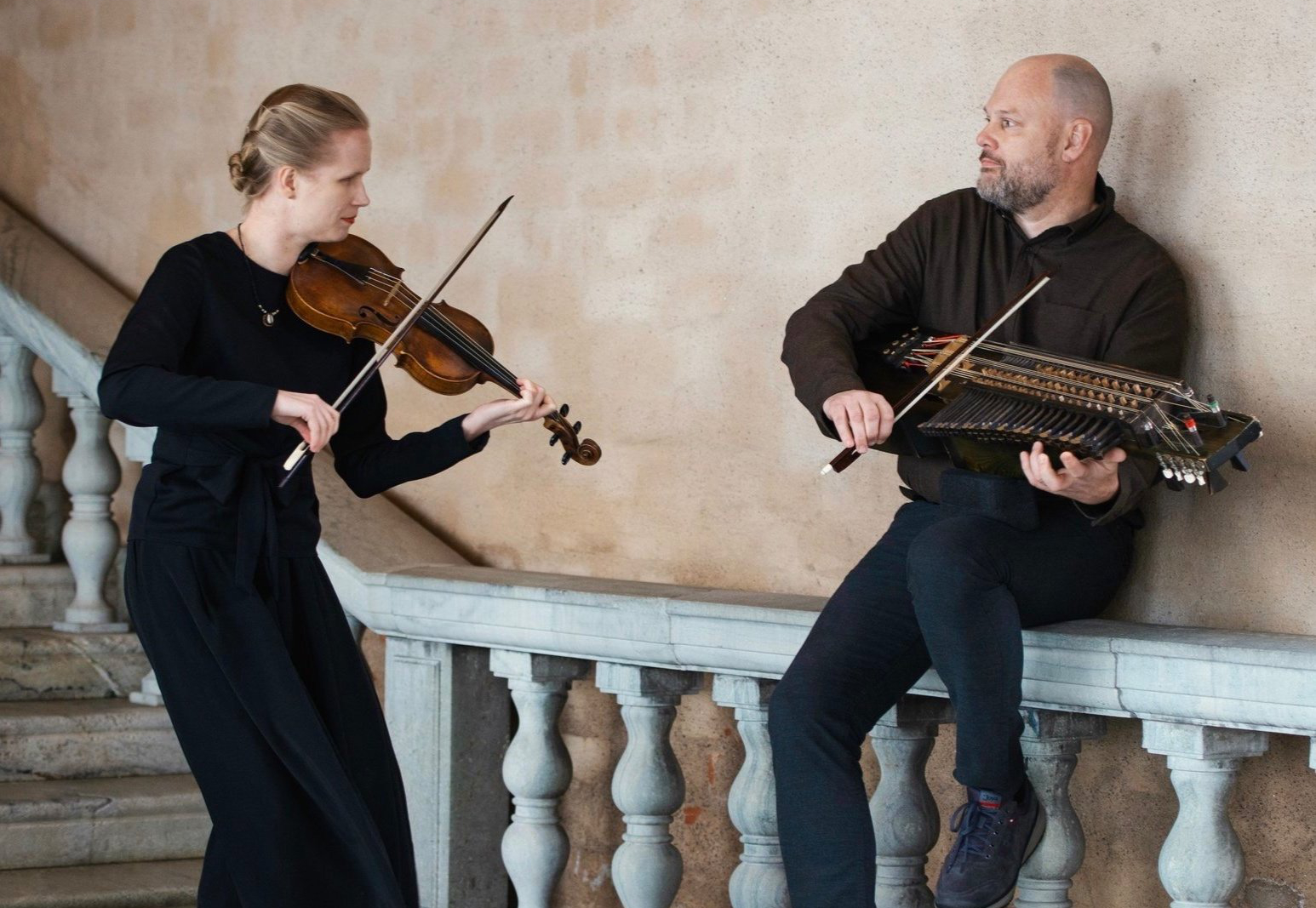 Montag, 02. März 2026 | Stadt Paderborn - Am Sonntag, 8. März, um 18 Uhr spielt das Duo Meidell und Hedin aus Schweden in der Reihe „Klangkosmos Weltmusik“ im Audienzsaal im Residenzmuseum Schloß Neuhaus Folk auf Barockgeige und Nyckelharpa. Johan Hedin und Ida Meidell sind führende Persönlichkeiten der nordischen Folk Szene.