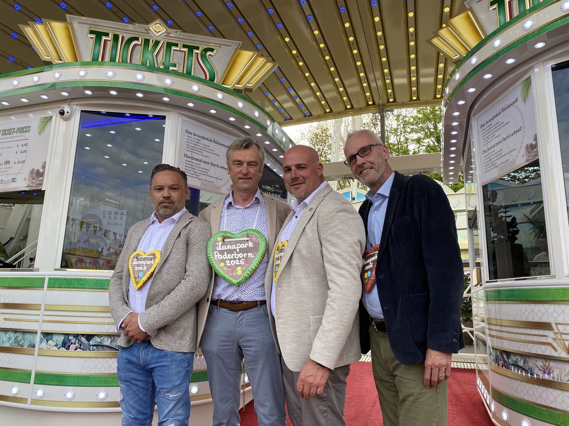 Samstag, 18. April 2026 | Stadt Paderborn - Auch nach 107 Jahren erlebt der Paderborner Lunapark noch eine Premiere. Zum ersten Mal eröffnete Robert Siemensmeyer die traditionelle Frühjahrskirmes. Der stellvertretende Bürgermeister begrüßte dabei bei herrlichem Frühlingswetter nicht nur jede Menge Besucher, sondern auch Mitglieder des Fachausschusses des Rates, angeführt vom Vorsitzenden Carsten Büsse und seinem Stellvertreter Tillmann Pöppel. Die Grüße der auf dem Maspernplatz vertretenen 60 Schausteller aus dem gesamten Bundesgebiet überbrachten David Lüdtke und Marc Petter vom Vorstand des Paderborner Schaustellervereins.