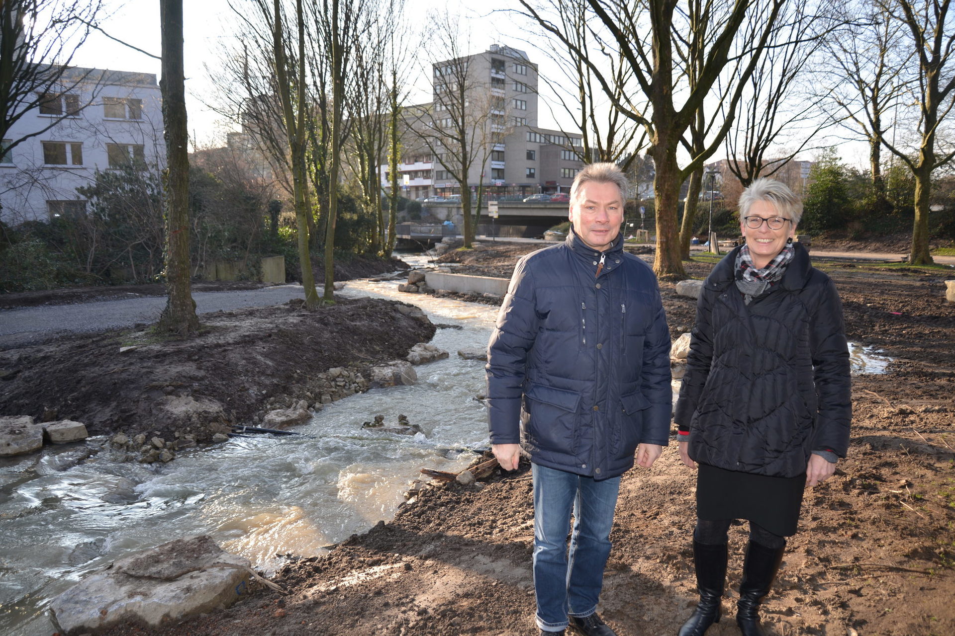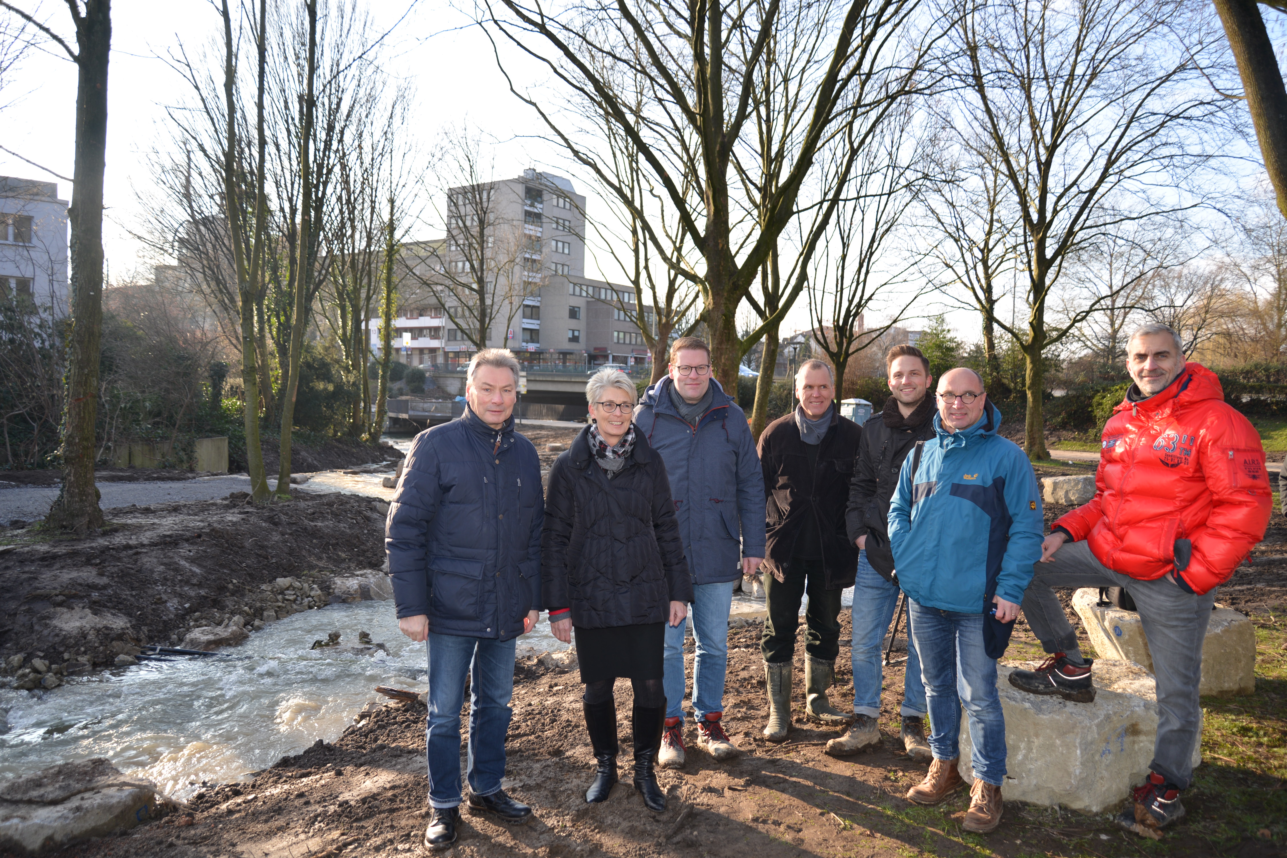 Mittwoch, 07. Februar 2018 | Stadt Paderborn - Ab sofort fließt die Maspernpader wieder und zwar nicht mehr eingeengt und begradigt durch eine Betonrinne, sondern durch ein komplett renaturiertes und breiteres Flussbett mit naturnahem gewundenem Verlauf. Mitte März soll auch das Umfeld um das Flussbett herum fertig gestellt sein. Die hier verlaufende, verbreiterte Wegespange inklusive zweier Wegebrücken, die noch über die Maspernpader gelegt werden müssen, sollen bis Ende März montiert sein.