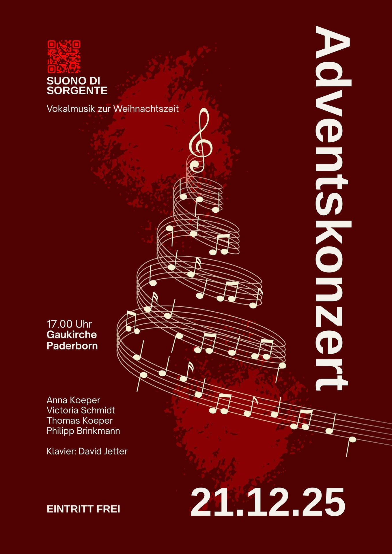 Auch in diesem Jahr lädt das Paderborner Vokalquartett „Suono di sorgente“ wieder zu einem besonderen musikalischen Erlebnis in der besinnlichen Adventszeit ein. Inmitten des Trubels auf dem Paderborner Weihnachtsmarkt sorgt das Quartett traditionell mit einer Stunde hochklassiger Vokalmusik für eine harmonische Auszeit. Die vier talentierten Musikerinnen und Musiker präsentieren ein abwechslungsreiches Programm, das sowohl klassische Weihnachtslieder wie „Maria durch ein Dornwald ging“ und „Tollite hostias“ als auch moderne Stücke wie das schwedische „Jul jul“ und „The Advent Candle“ umfasst.