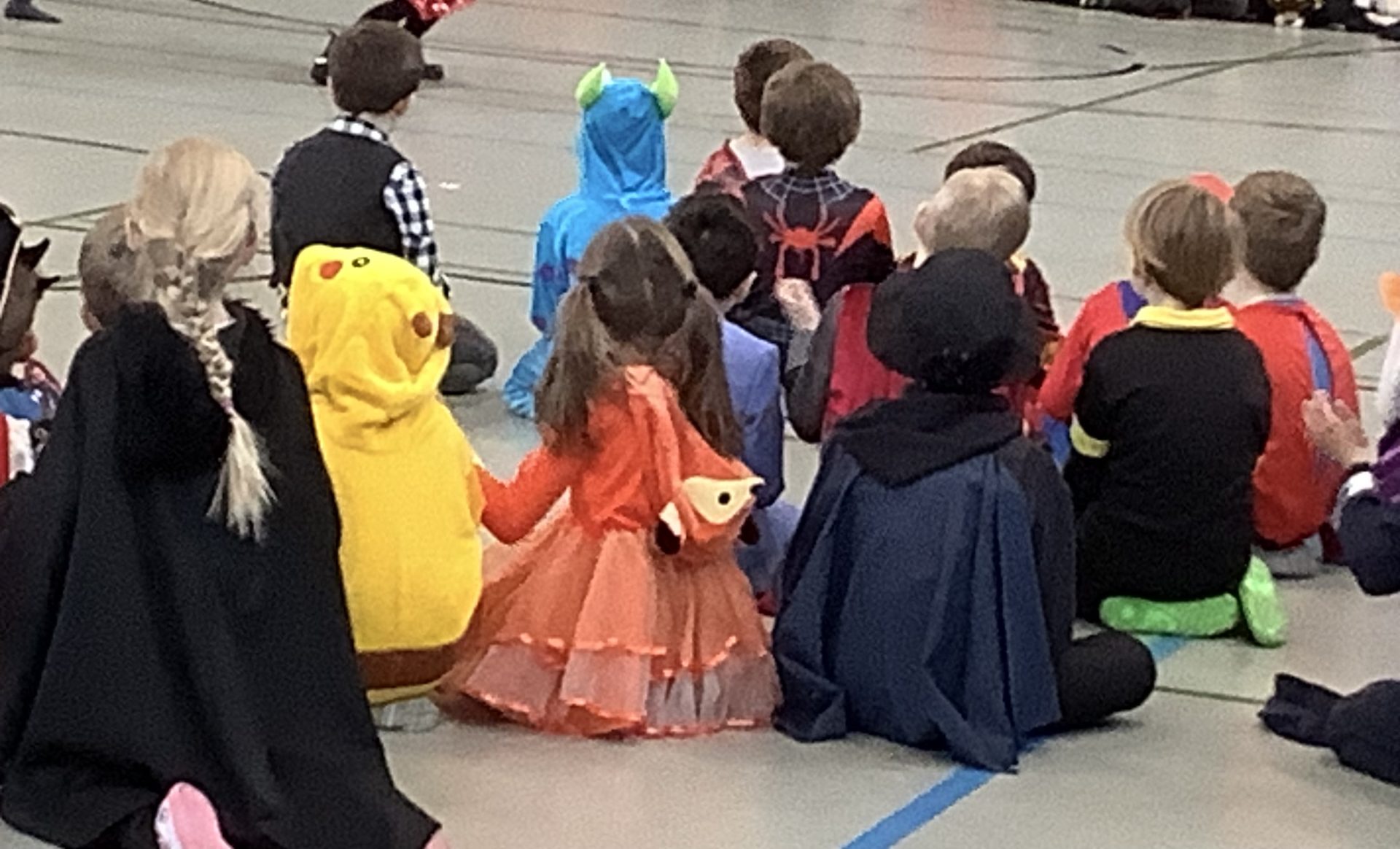 Wir feiern Karneval! In den Klassen wird gemeinsam gefrühstückt, gespielt und getanzt. Abschließend gibt es einer Polonaise durch das Schulgebäude und in der Turnhalle werden Sketche oder Tänze vorgeführt.