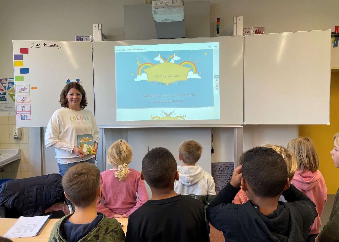 Am Tag des Lesens, den 17.11.23, fand am Grundschulverbund Benhausen-Neuenbeken eine Lesung mit der Kinderbuchautorin Stefanie Erdmann statt. Frau Erdmann entführte die Kinder der Klassen 1 und 2 in das Reich der Einhörner und ihrer wundersamen Magie. Sie las aus ihrem Erstlingswerk „Club der Einhörner“ vor und begeisterte die Kinder mit ihrer zauberhaften Geschichte.