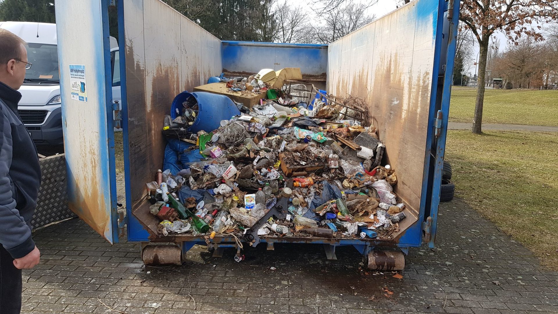 Insbesondere Plastik- und Glasmüll wurden von den anagierten Anglern aus den Gewässern gefischt. Das Müllspektrum reicht von Flaschen, Bechern, Gläsern und Plastiktüten über eine Regentonne, Metallgittern bis zu einer alten Schaumstoffmatratze. der gesammelte Müll reicht aus um einen halben Container zu füllen!
