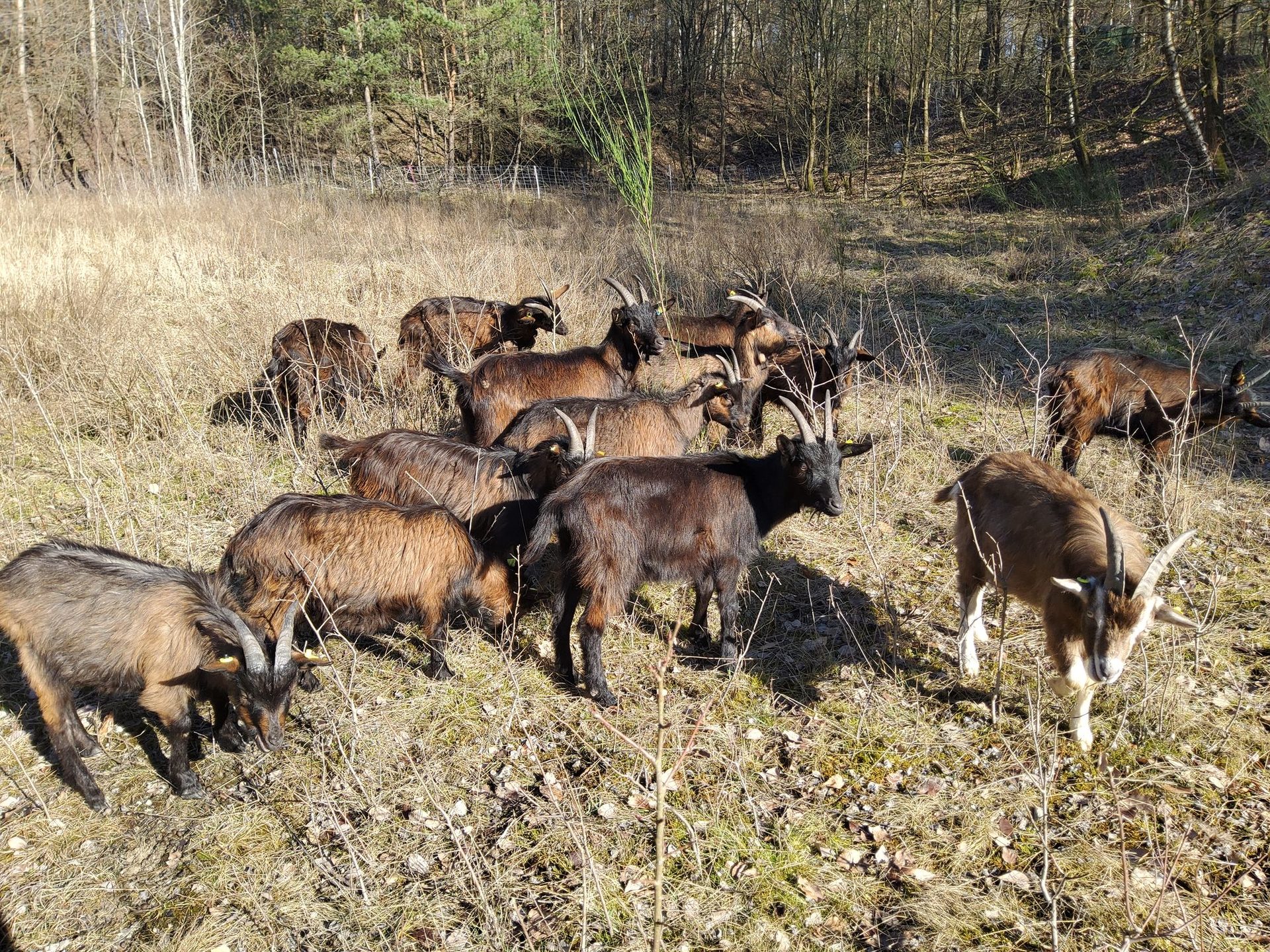 Seit 2022 sorgt zudem eine Ziegenherde dafür, vor allem den Gehölzaufwuchs auf verschiedenen Naturschutzflächen zurückzudrängen. Werden die Tiere, wie im Fall der Ziegen, von Fläche zu Fläche verbracht, hat dies den zusätzlichen Vorteil, dass sie als Taxi für Pflanzensamen und für bestimmte Tiere wie Insekten, Schnecken und sogar mal einer Eidechse dienen können und so deren Ausbreitung fördern.