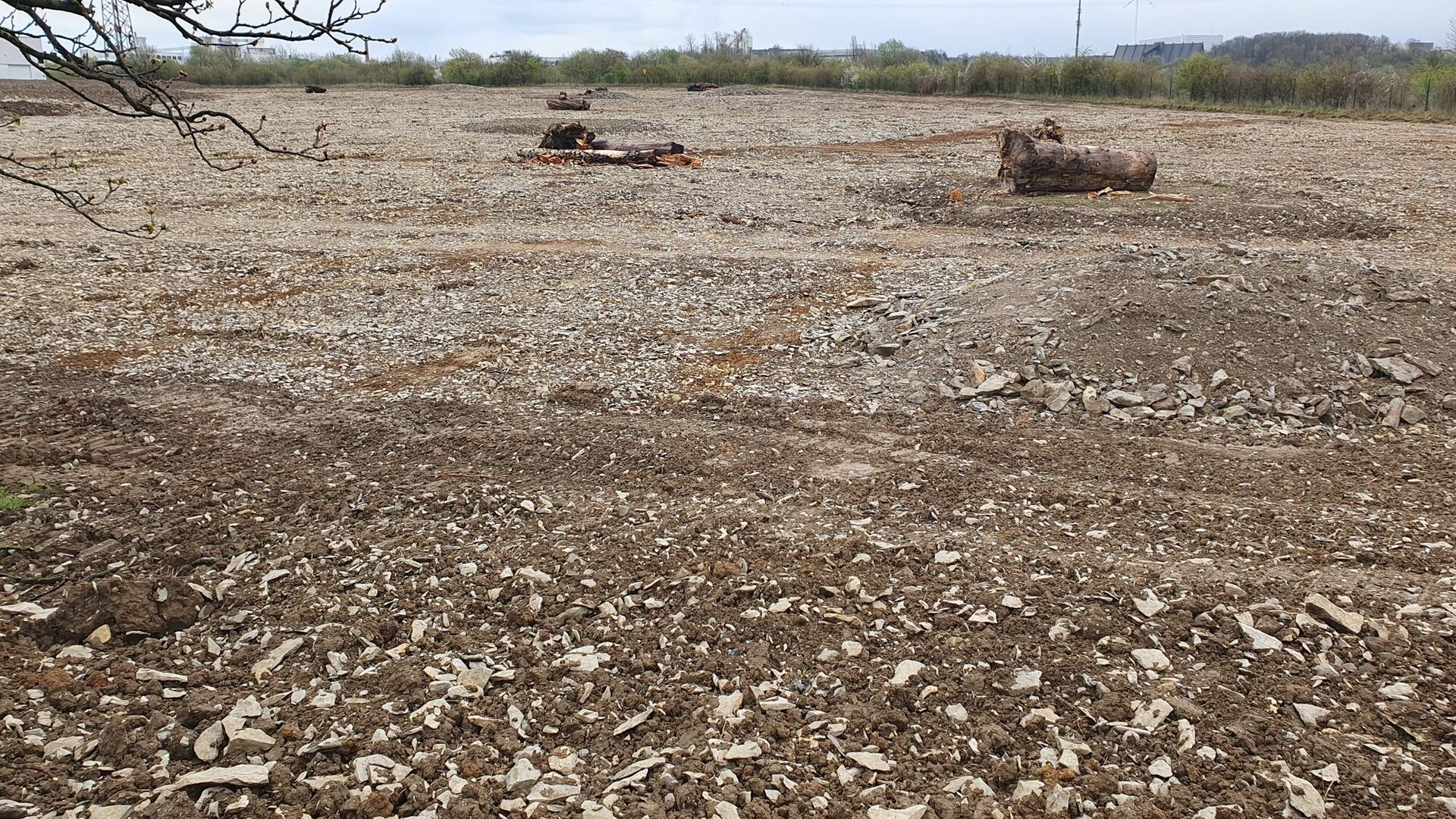 25.03.2026 - Die Erdarbeiten im 1. Bauabschnitt sind abgeschlossen. Der Oberboden wurde randlich zu flachen Geländeaufhöhungen zusammengezogen. Entstanden sind steinig-lehmige, nährstoffarme und trockene Standorte. Sie werden schon bald an diese besonderen Bedingungen angepassten Pflanzen als Lebensraum dienen. Totholz- und Steinhaufwerke bilden zusätzliche Strukturen, von denen Reptilien wie die Zauneidechse, Kleinsäuger und Insekten besonders profitieren werden.