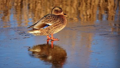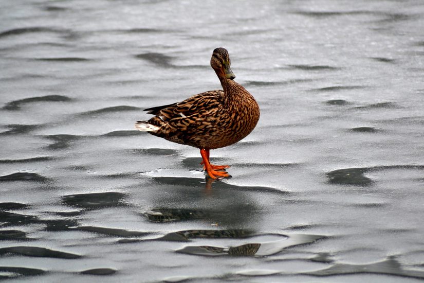 Sobald die Gewässer erstarren, bleibt den Wasservögeln nichts anderes übrig, als auf dem Eis zu überwintern. Festfrieren können sie dabei jedoch nicht, denn Enten und Schwäne besitzen sogenannte kalte Füße. Durch die Haut zwischen ihren Zehen ziehen sich feine Blutgefäße, die mit kaltem Blut durchblutet werden, sodass die Wasservögel über ihre Füße wenig Wärme verlieren und nicht festfrieren.