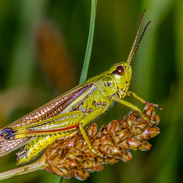 Auf diese feuchten Weiden haben sich nicht nur Sumpfschrecke und die Goldene Acht, sondern auch spezialisierte Pflanzenarten wie das Wassergreiskraut angepasst. Ist es zu trocken oder die Bewirtschaftung zu intensiv, werden diese Arten verdrängt.