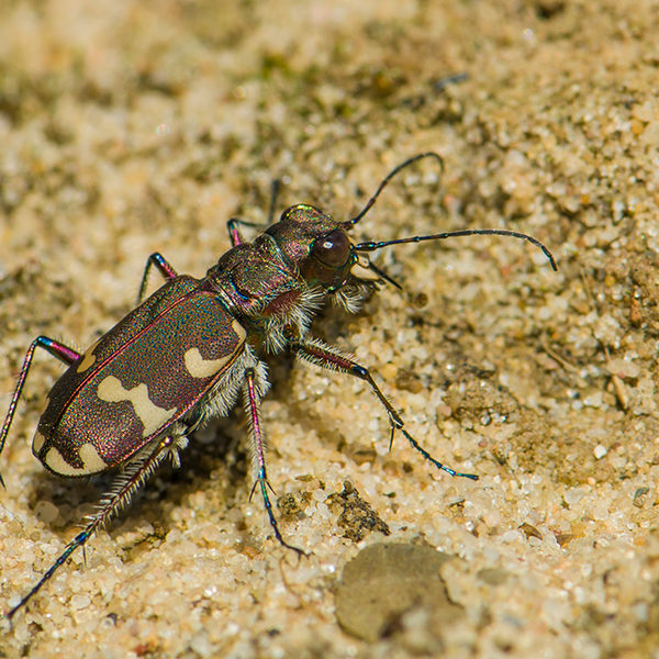 Auch der Sandlaufkäfer, dessen Larven sich im Boden vergraben und auf Beute lauern, nutzen trockene, locker gelagerte Böden. Zu dicht darf die Vegetation dann nicht sein.