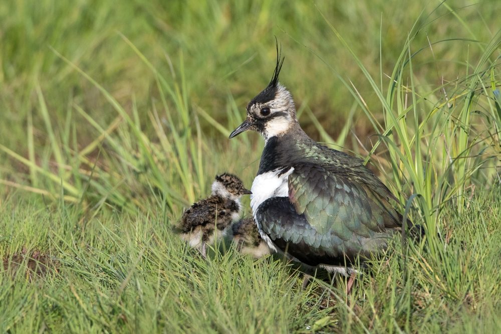 Der mit seinem schwarz-weiß gefärbten Federkleid unverwechselbare Kiebitz ist ursprünglich ein Charaktervogel feuchter, extensiv bewirtschafteter Grünlandflächen. Der Kiebitz und seine Jungtiere sind besonders gut zu Fuß unterwegs und daher benötigt er lockere, niedrigwüchsige Feuchtwiesen, in denen er sich nicht nur gut fortbewegen, sondern im Boden auch nach Nahrung stochern kann.