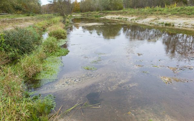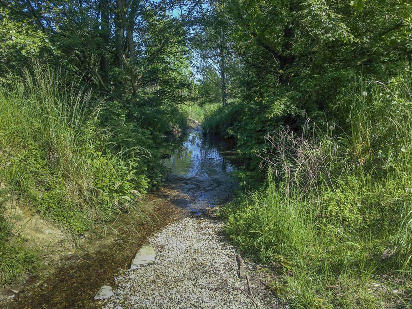 Gesäumt von lebensraumtypischen Gehölzen weist die Jothe in Teilbereichen aber auch Kiese auf.