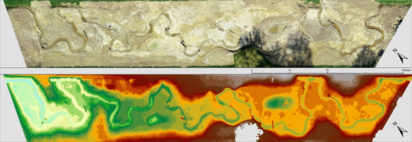 05.05.2021 - Aus der Luft wird besonders deutlich, wie vielgestaltig die neue Jothe ist. Kies, Sand, Lehm, wechselnde Gewässerbreiten und -tiefen sowie Blänken: All dies sieht man erst richtig von oben.
