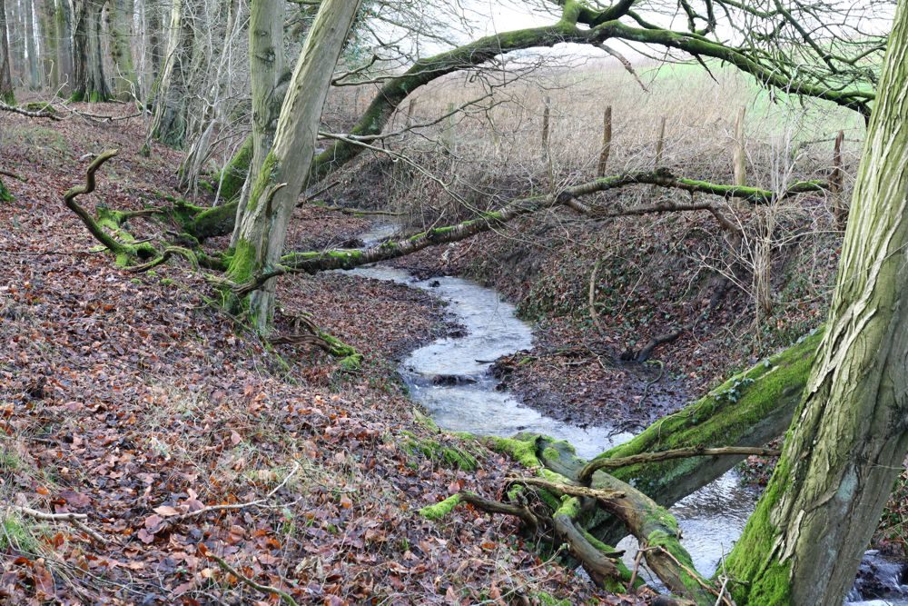 Totholz und wieder ausschlagfähige Weidensteckhölzer sind als wichtige Strukturelemente eingebracht worden. Sie werden dafür sorgen, dass Ausspülungen und Umlagerungen des anstehenden Bodensubstrates stattfinden können. Darauf sind viele Kleinlebewesen angewiesen. Auch wird der Bach zukünftig wieder beschattet, damit sein Wasser sich nicht zu sehr erwärmt.