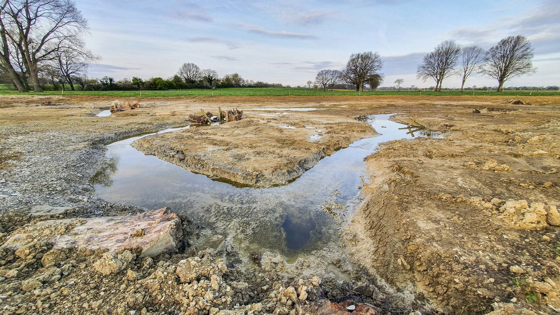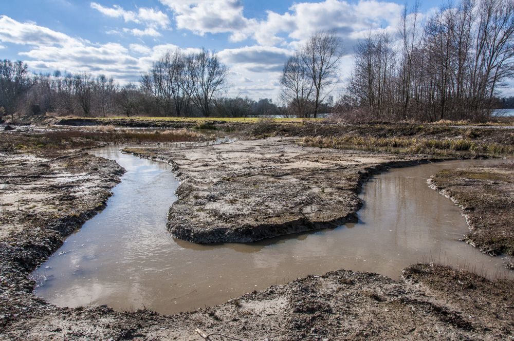 Wie dynamisch die Verhältnisse vor dem Eingreifen des Menschen gewesen sind, das zeigen die verschiedenen Bodenarten, die beim Aushub angetroffen wurden. Kiese haben sich bei starker Strömung abgelagert, Sande bei reduzierter Fließgeschwindigkeit und Lehme bei langsam fließenden Überstauungen.