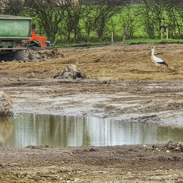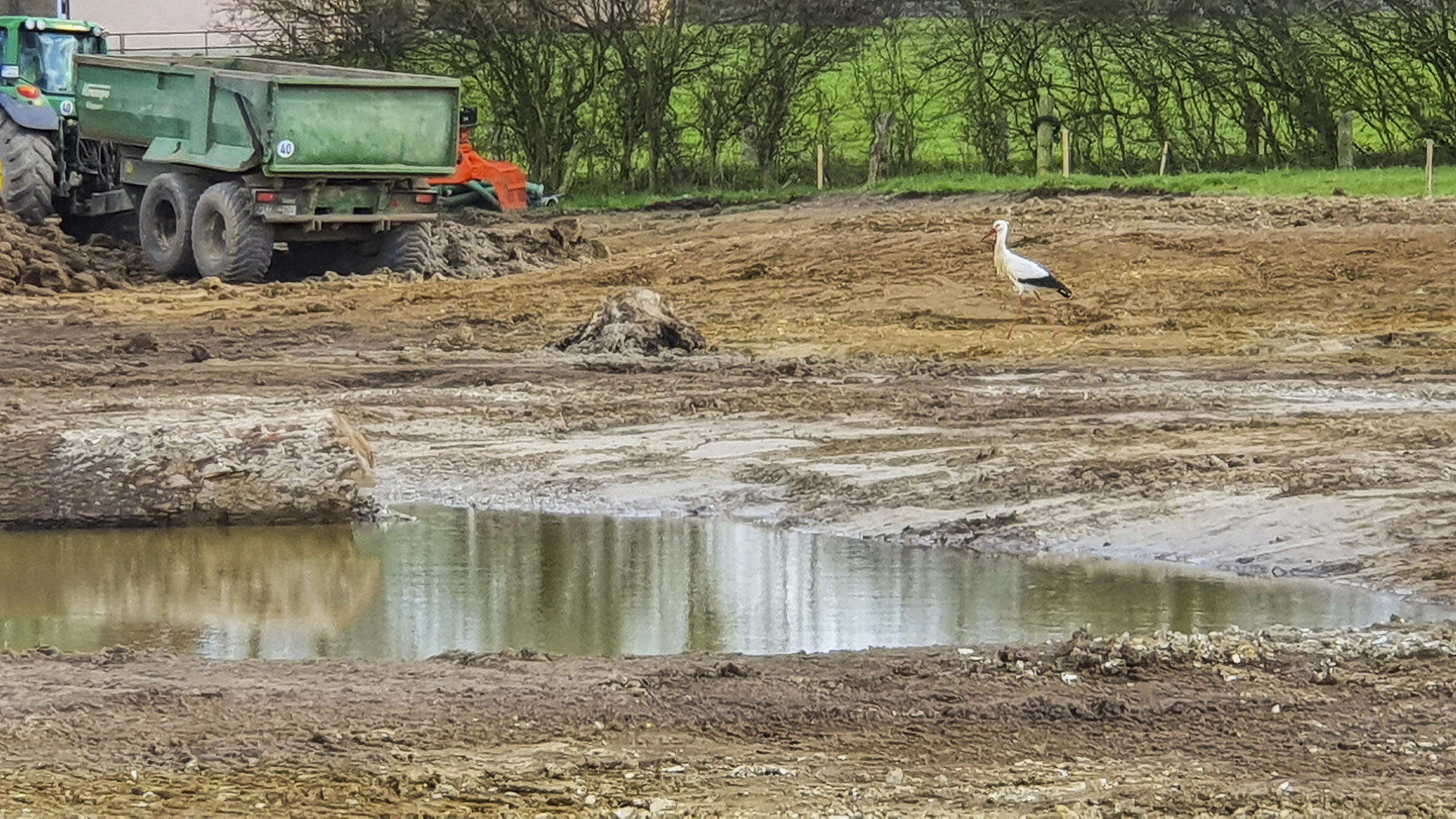 Mit der Maßnahme wird auch das südlich benachbarte Naturschutzgebiet "Elser Holz/Rottberg" im Sinne des Biotopverbundes näher an die ebenfalls ökologisch hochwertige Lippeaue herangebracht. Das hat ein Weißstorch schon in der Bauphase gemerkt...