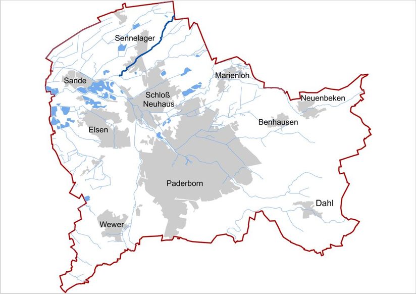 Der Unterlauf ist dagegen stark durch nah heranrückende Wohnsiedlungs- und Straßenflächen Sennelagers geprägt. Unterhalb der Ortslage sind in Waldbereichen wiederum sehr naturnahe und hochdynamische Strukturen mit Steilufern, Totholz und Sandbänken ausgeprägt.