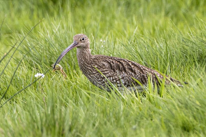 Watvögel wie der Große Brachvogel haben sich auf Feuchtwiesen des Sander Bruchs angesiedelt. Wie auch der Kiebitz legt er sein Nest auf dem Boden an und sammelt seine Nahrung in den Wiesen und Weiden. In den feuchten, aufgeweichten Böden kann er auch nach Bodenlebewesen stochern.