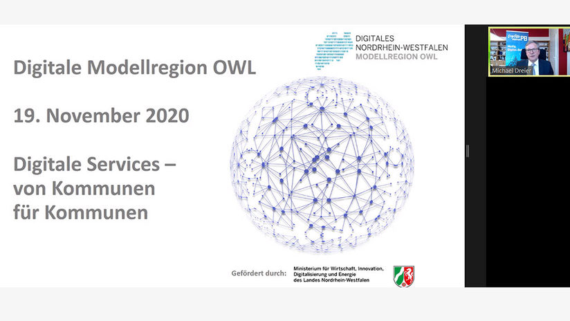 Die virtuelle Veranstaltungsserie zum Stand der kommunalen Digitalisierungsprojekte machte ihren 4. Stopp bei den erfolgreichen Leuchtturmprojekten der Digitalen Modellregion Ostwestfalen-Lippe (OWL). Paderborns Bürgermeister Michael Dreier und Andreas Meyer-Falcke, Landes-CIO im Wirtschafts- und Digitalministerium NRW, waren sich einig: „Wir sind bereit für ein digitales NRW. Von den Lösungen für digitale Services für Kommunen können alle Kommunen profitieren.“
