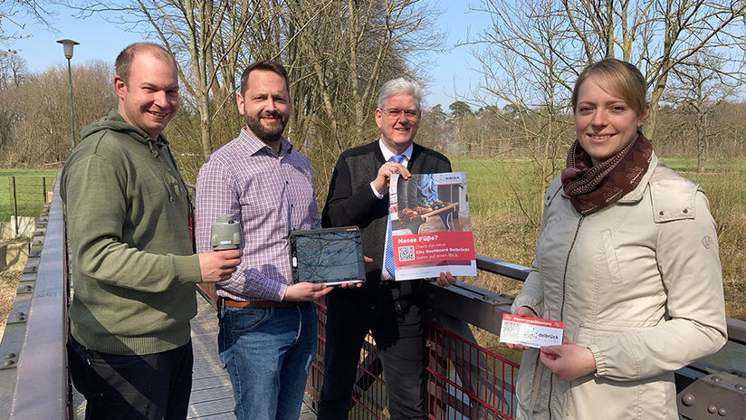 Darüber hinaus werden die Flusspegeldaten vom Boker Kanal, der Ems, dem Grubebach, dem Haustenbach und der Lippe in eine Einsatz-App der Delbrücker Feuerwehr eingespielt, um schnell auf drohendes Hochwasser reagieren zu können. Außerdem erhält das Ordnungsamt der Stadt Delbrück einen Überblick über die Belegungssituation der barrierefreien Parkplätze. „Um das City Dashboard Delbrück bei den Delbrücker Bürger*innen bekannt zu machen, werden wir an vielen Stellen durch einen QR-Code-Aufkleber darauf aufmerksam machen. Durch scannen des Codes mit seinem Smartphone gelangt man ganz einfach auf das City Dashboard Delbrück“, freuen sich Bürgermeister Werner Peitz und Miriam Mattiza, Digitalisierungsbeauftragte der Stadt Delbrück, über die gelungene Fertigstellung des City Dashboard Delbrück. Entwickelt wurde das Dashboard in Zusammenarbeit mit der regio iT GmbH aus Aachen, die auch bei der Umsetzung des LoRaWAN-Projekts unterstützt.