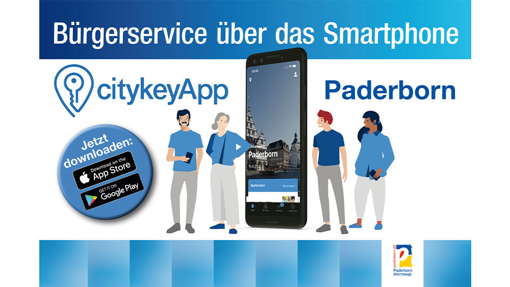 Die von der Deutschen Telekom entwickelte citykey-App ist jetzt auch für den Standort Paderborn verfügbar. In der App werden digitale Angebote der Stadt gebündelt. Derzeit sind sieben Funktionen aktiv, dazu zählen beispielsweise der Veranstaltungskalender, Neuigkeiten aus der Stadtverwaltung und das Digitale Bürgerbüro. Weitere Funktionen sind in Planung. Die App kann kostenfrei über den App Store oder Google Play heruntergeladen werden.