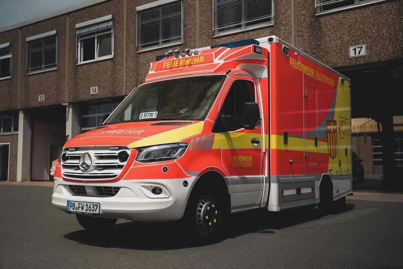 Das Fahrzeug ist so konzipiert, dass es auch den Transport von Patienten im Klinikbett ermöglicht.