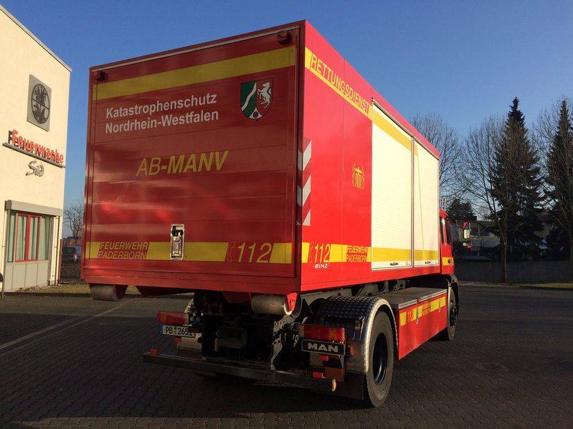 Der Abrollbehälter für den Massenanfall Verletzter (AB-MANV) ist ein vom Land NRW zur Verfügung gestellter Abrollbehälter mit der Ausstattung zur Versorgung vieler Verletzter. Die Beladung besteht zum Beispiel aus zwei Rettungszelten mit Zeltheizung, Notfallmedizinische Ausstattung zur Behandlung Schwerverletzter, acht Beatmungsgeräte, automatisierte externe Defibrillatoren, Krankentragen, Beleuchtungsgerät, uvm.