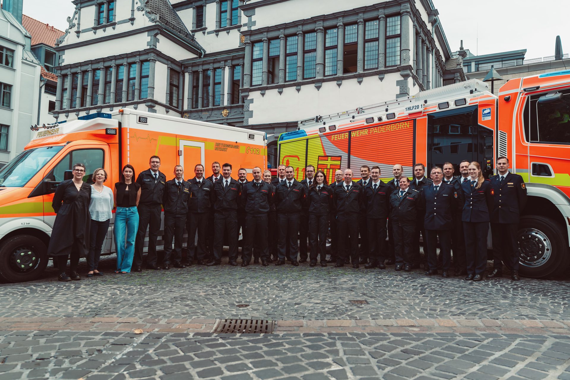 Das Personal im Rettungsdienst der Feuerwehr Paderborn besteht aus den städtischen Feuerwehrbeamten und ca. 20 Beschäftigten. Während der Laufbahnausbildung werden alle Beamten zu Rettungssanitätern und später zu Rettungsassistenten, zukünftig zu Notfallsanitätern, ausgebildet. Somit ist eine multifunktionale Verwendung der Beamten auf allen Einsatzfahrzeugen des Brandschutz- und Hilfeleistungsdienstes sowie des Rettungsdienstes möglich.