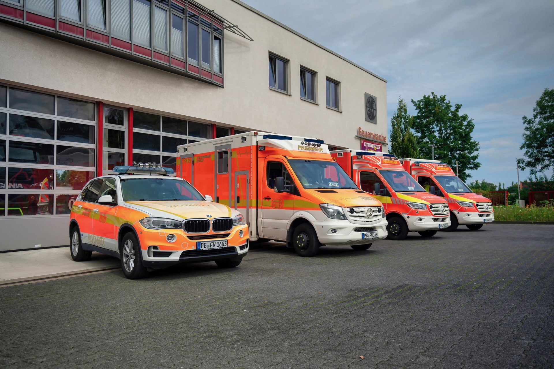 Zur Leistungserbringung im Rettungsdienst werden von der Stadt Paderborn zwei kombinierte Feuer- und Rettungswachen im Norden und Süden der Kernstadt und eine Rettungswache im Stadtteil Schloss Neuhaus unterhalten.
