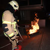 Brand eines Müllcontainers, Löschmaßnahmen durch die Feuerwehr , im Einsatz Hilfeleistungslöschfahrzeug der Wache Nord.