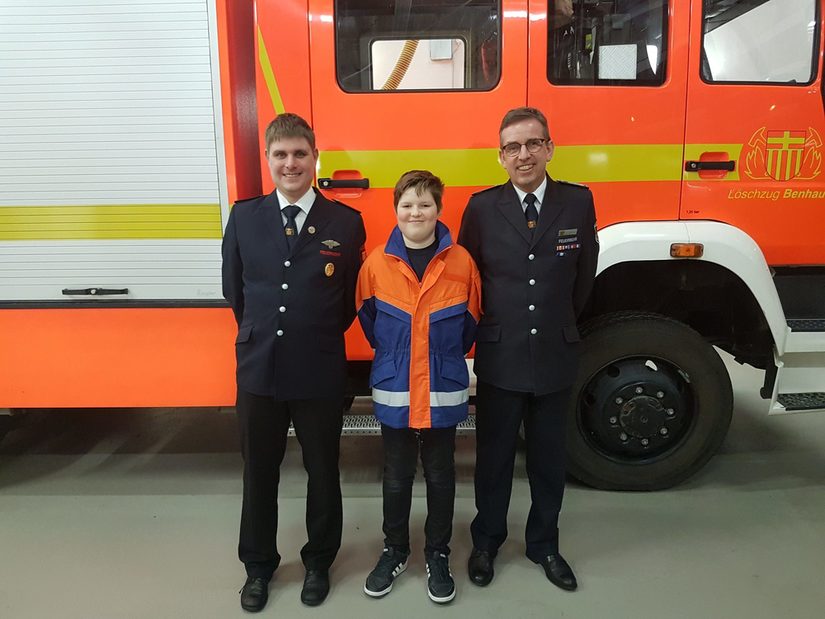 In die Jugendfeuerwehr Benhausen wurde Noah Henning, Sohn des Löschzugführers per Handschlag durch Ralf Schmitz aufgenommen.