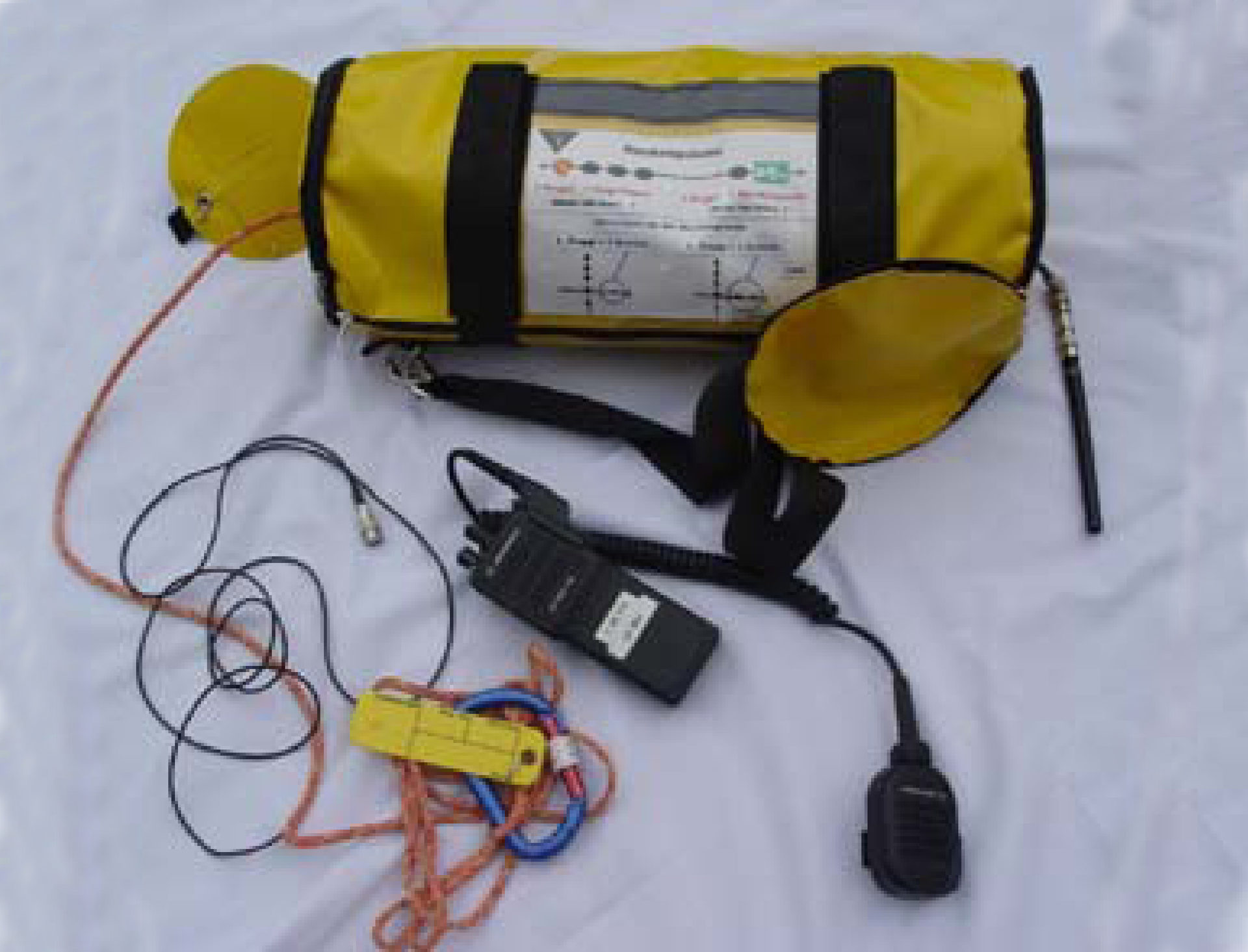 Am Ende der Leine befindet sich die mitgeführte 2m-Antenne. Im Nahbereich bis 20m um diese Antenne können Funksprüche zum Funkgerät außerhalb des Gefahrenbereiches übermittelt werden.