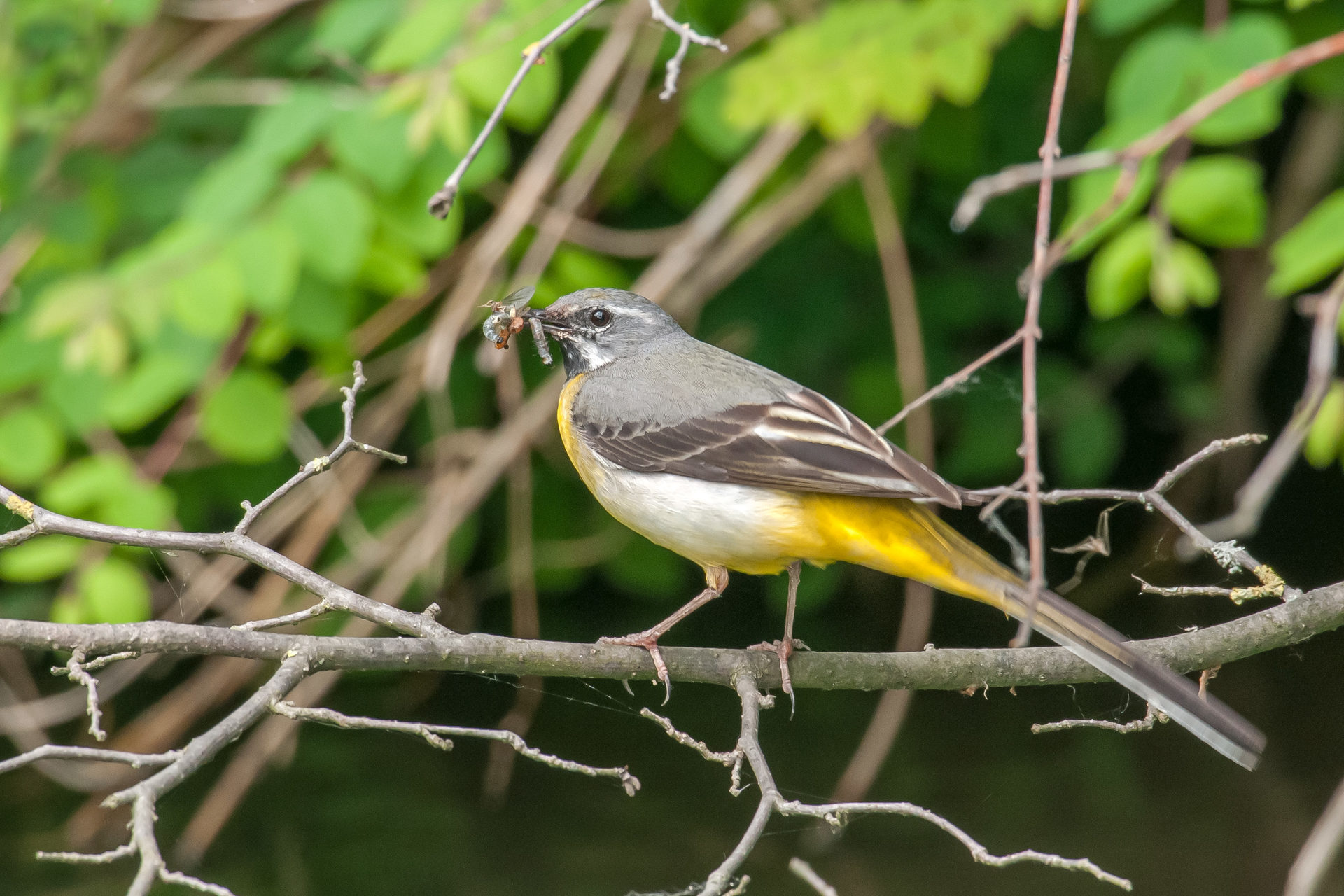 Als charakteristische Vogelart an Gewässern ist die Gebirgsstelze regelmäßiger Gast am umgestalteten Krebsbach. Der auffällig gelb gefärbte Vogel mit dem ständig wippenden Schwanz lebt überwiegend von kleinen Insekten, die er am Ufer und auch im Wasser findet.