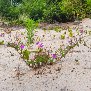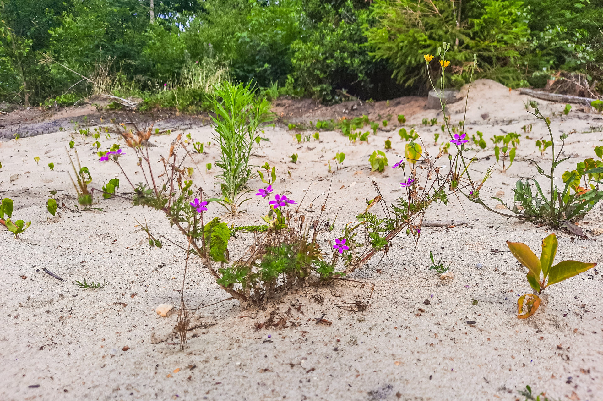 Von den Pflanzen zählt die Krötenbinse dazu, die an Gewässerufern und in neu entstandenen feuchten und offenen Pionierfluren zu beobachten ist. Ähnliches gilt für die Zarte Binse und auch für die Flatterbinse. Der Reiherschnabel und das Kahle Bruchkraut besiedeln dagegen sandige und trockene Standorte.