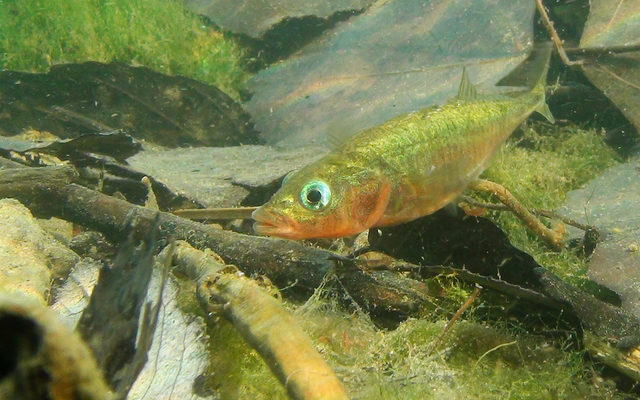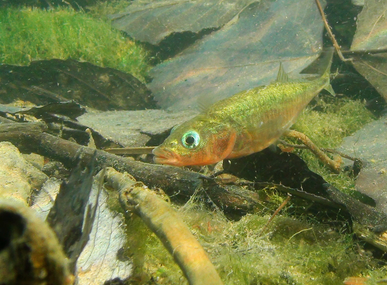 Im Bach selbst lebt der Dreistachlige Stichling, der sich bei niedrigen Abflüssen und Trockenfallen des übrigen Bachverlaufs in Gumpen und Ausspülungen, z. B. unter Baumwurzeln und Totholz, zurückzieht. Auch der Bachflohkrebs (Gammarus spec.) kann sich in dem ständig sich verändernden Bachbett halten.