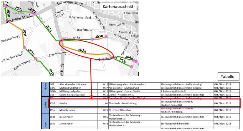 Download der Karte und der Tabelle - Gewässerunterhaltung Stand 28.09.2018